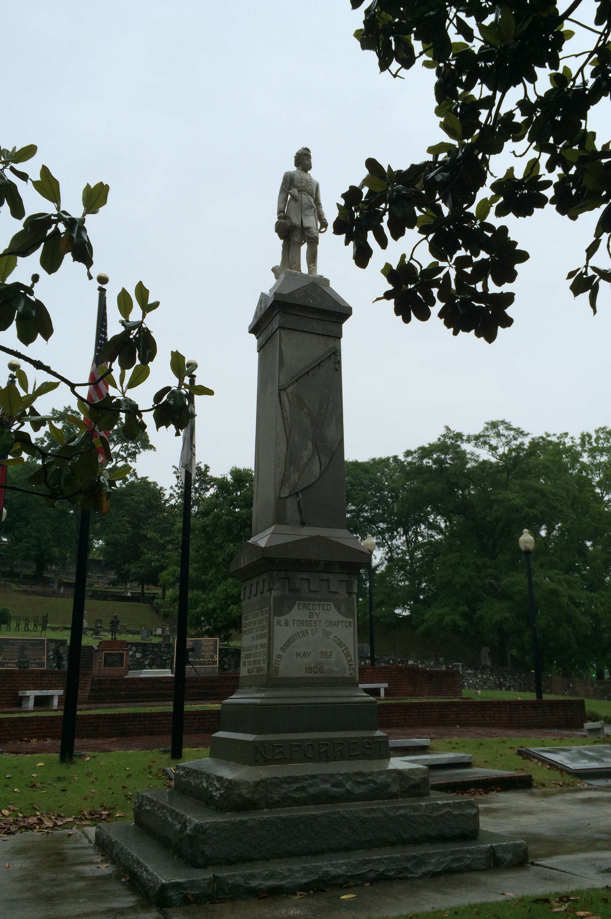 Myrtle Hill’s Confederate monument sits atop the cemetery where Fort Stovall probably once stood during the Civil War. I took this picture after lunch when the rain stopped.