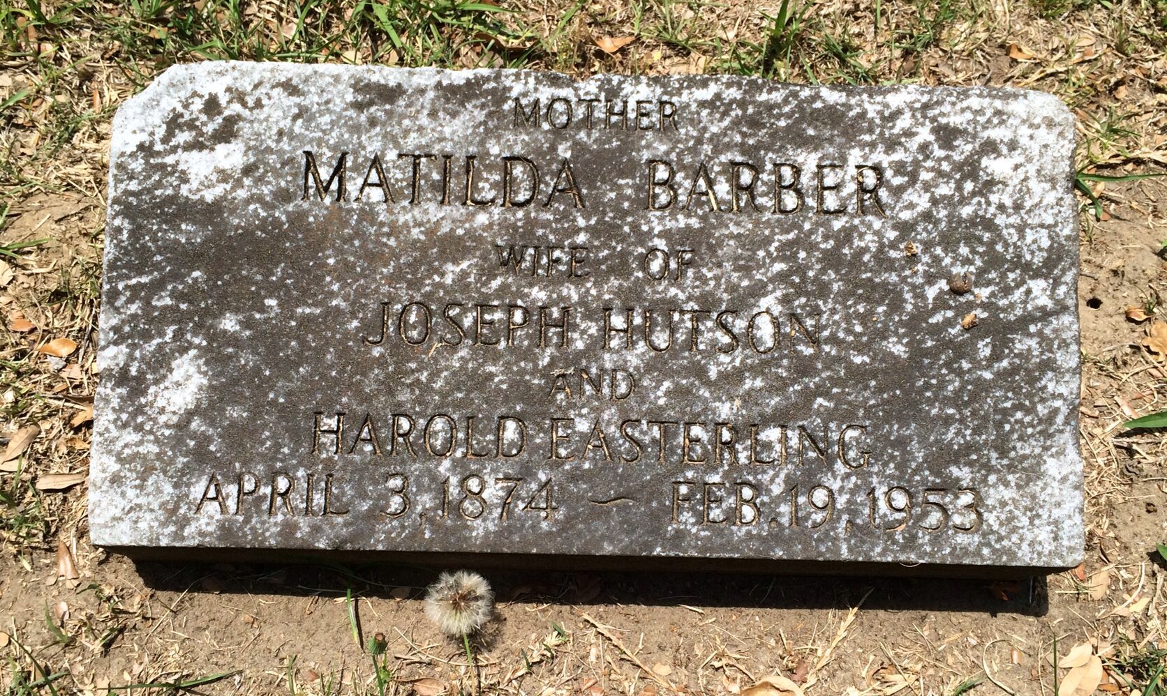 For example, there’s the grave of Matilda Barber Hutson Easterling. It’s a small stone inscribed with her maiden name, her birth/death dates, and the names of her two husbands. Neither is buried beside her but her first husband, Joseph Hutson, is buried somewhere at Magnolia. He died in 1908.