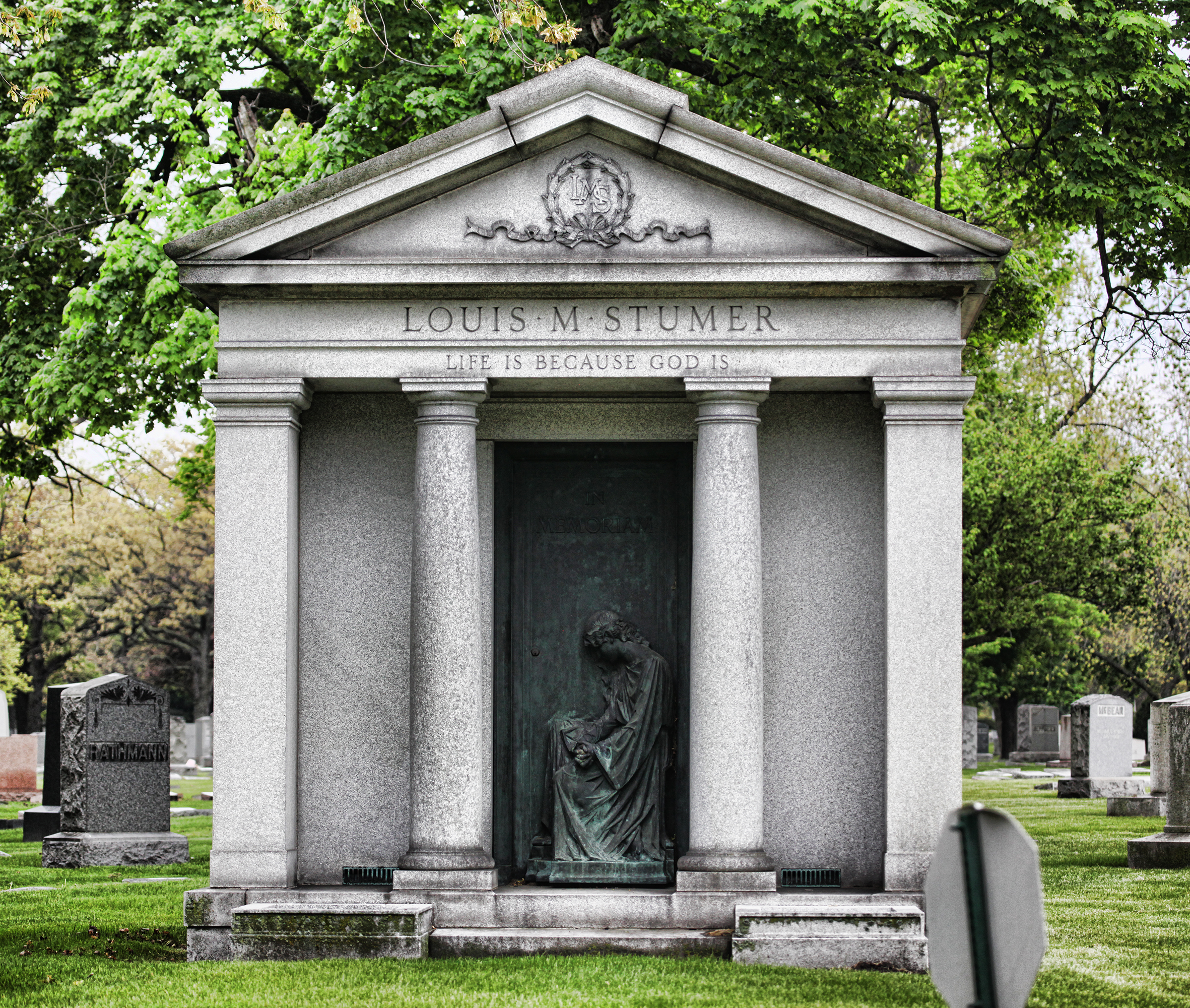 One of the most stunning monuments at Graceland is for William Kimball, the piano manufacturer. A native of Maine, Kimball moved to Chicago in 1857 and started the Kimball Piano Company with only four pianos. He sold these at a profit and eventually started selling pianos manufactured in the east then shipped to his store.