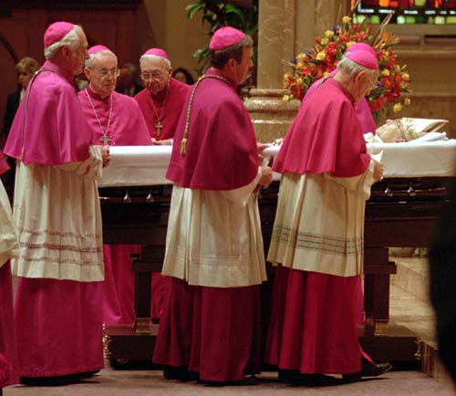 Bishops pass the body of Cardinal Joseph Bernardin in Holy Name Cathedral in Chicago. Picture by the Cincinnati Enquirer.