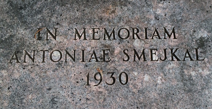 The monument was built for Joseph Josiah Wasserburger and his wife, Alma. Josiah was a manager for Household Finance (formerly Omaha Finance) and became quite wealthy from real estate investments. He and Alma had no children but lavished their love on their dogs. This well-written article can tell you more about them. Marta Dawes’ comprehensive Omaha cemetery web site provided me with much of the information you’ll read in this post.