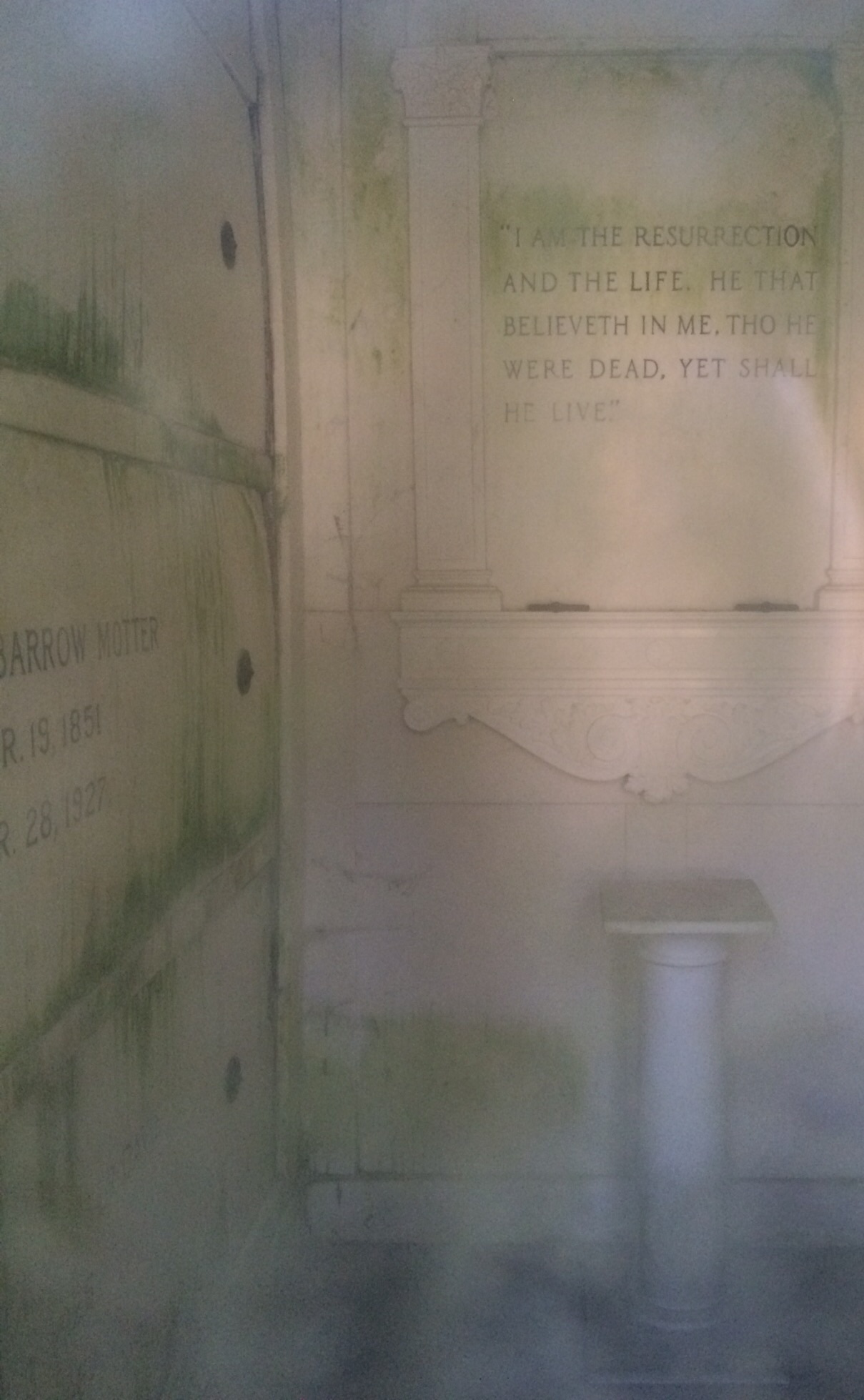 The Motter Mausoleum is one of the few on the Row that has glass inserts in the doors so I could get a good look inside of it.