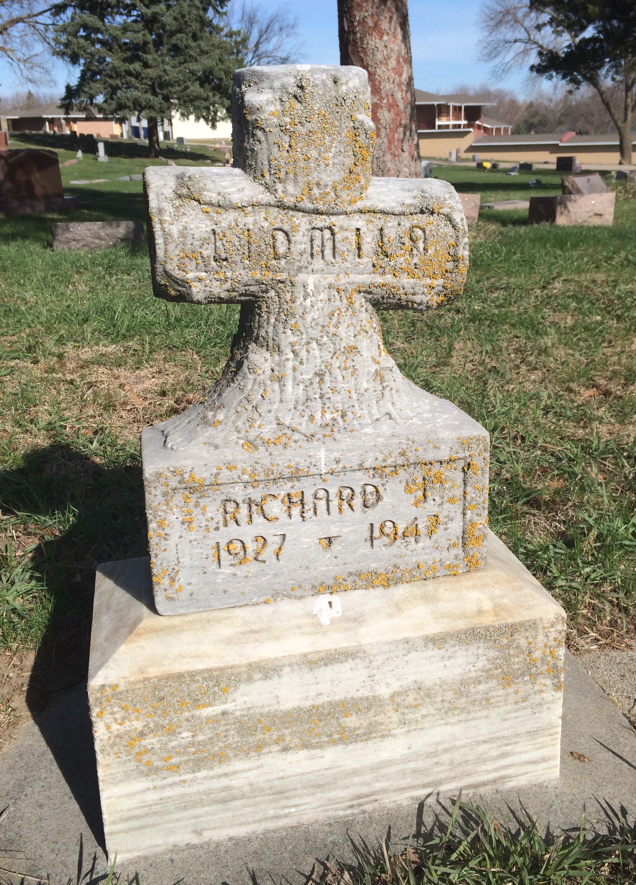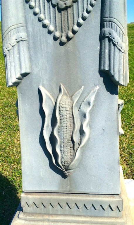 Finding an ear of corn on the side of a white bronze marker was a delightful surprise. I learned that it was a country custom to send a sheaf to relatives on the death of a farmer. Gust Janssen was clearly a farmer.