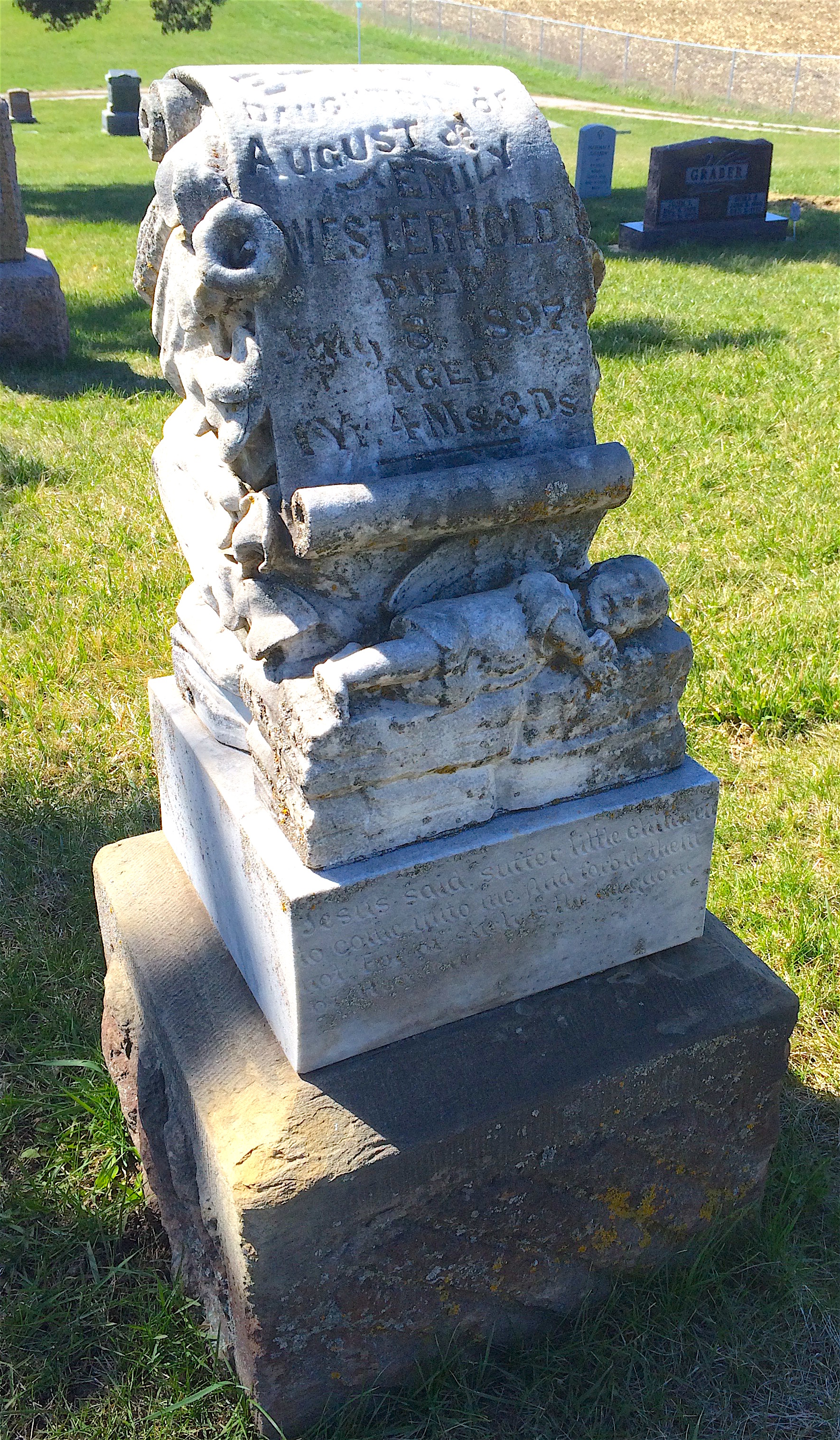 I had little success in finding out much about Gust (possibly short for August) Janssen. He was 31 when he died. There are no other Janssens buried at Wisner Cemetery. The sweet inscription on his monument appears to be in German.