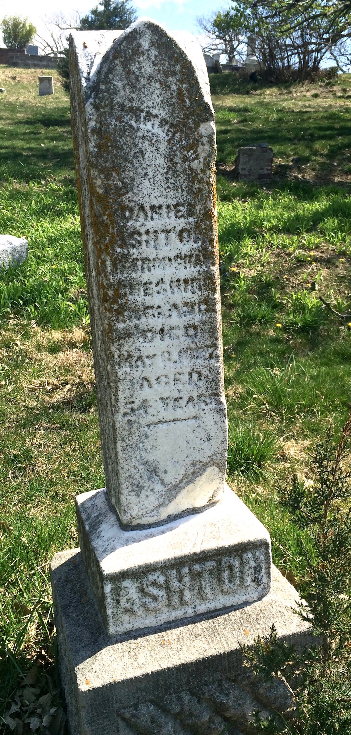 Two men are buried on the hillside who appear to have come to America in their younger days but on their own. Daniel Ashton, a native of Cheshire, England, ended up in Council Bluffs and died there are the age of 54.