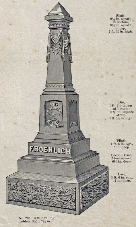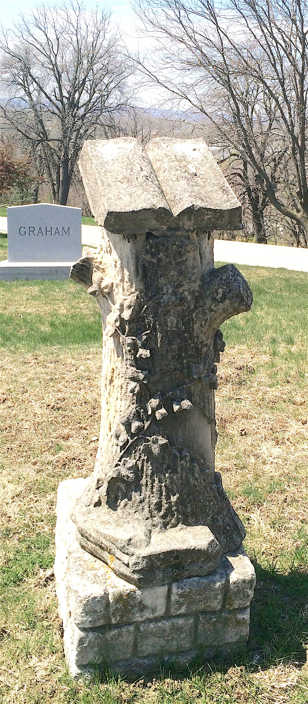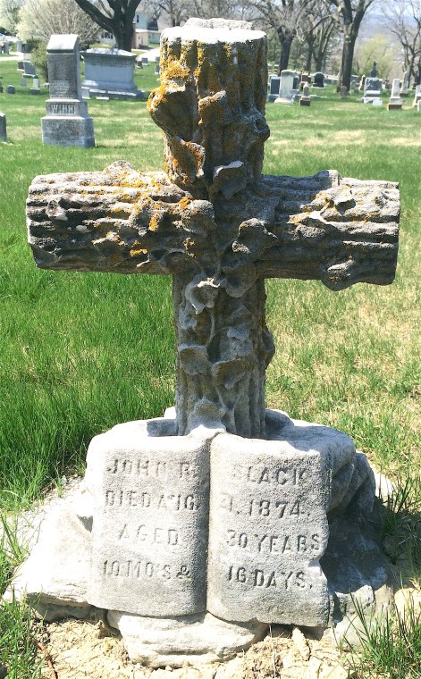 The son of John William and Anna Christine Madison Gibler appears to be alone. I couldn’t find a name on the stone but Find a Grave identifies him as Robert Burdette Gibler, who died at the age of 2. I learned that his maternal grandparents, Charles and Sene Madison, are buried beside him in unmarked graves. His parents, who died in the 1940s, are buried at nearby St. Joseph Cemetery with their other son, Harvey, who lived much longer and died at 61.