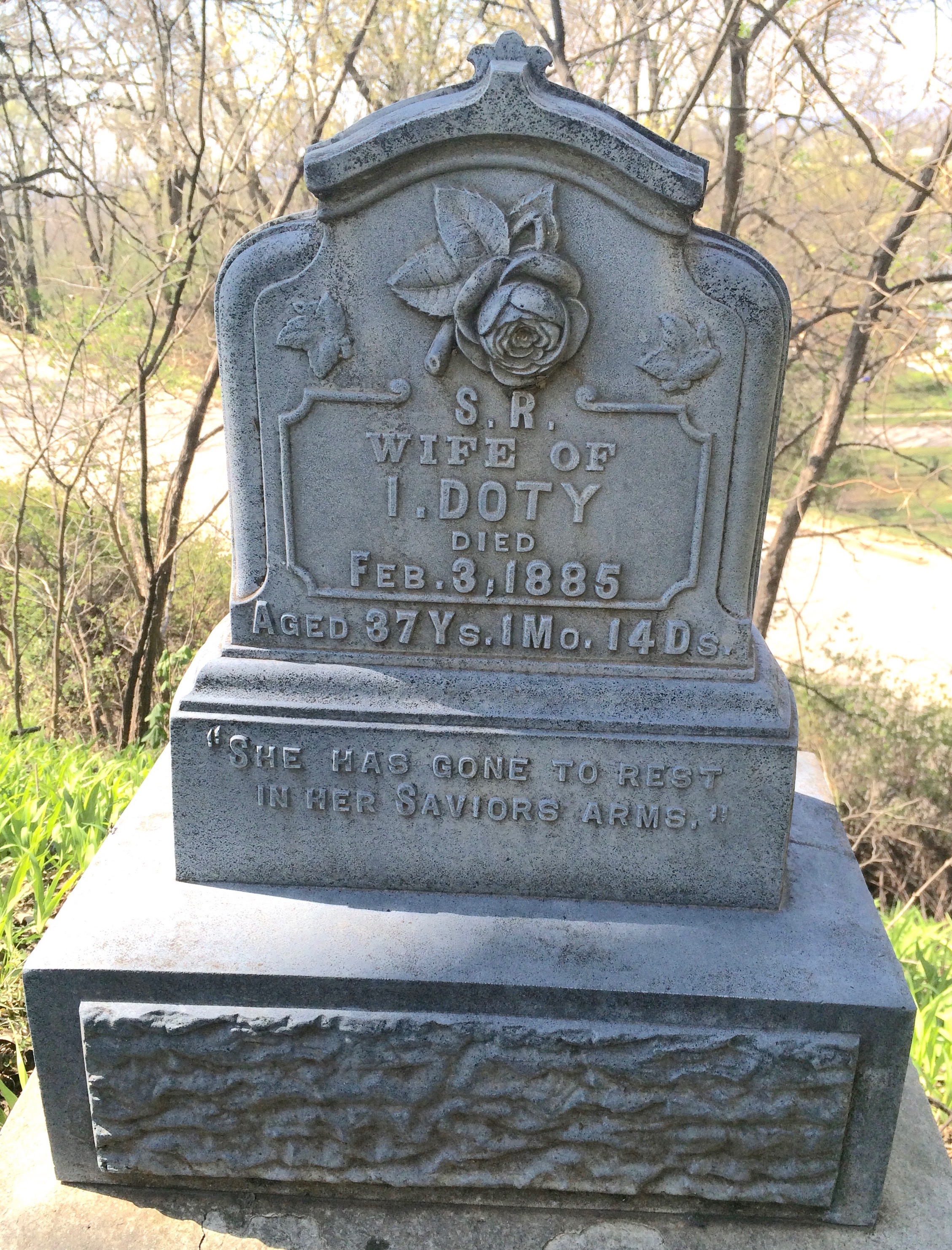 Anna Catherine Magdalena Stelling’s stone sits by itself under a tree. A German immigrant, she was married to a fellow German immigrant named Fred Stelling. They were married in April 1898. Because the details of her will are on Ancestry, I learned that the sale of her possessions was possibly needed to pay her medical bills. Beyond her sewing machine, she didn’t have much.