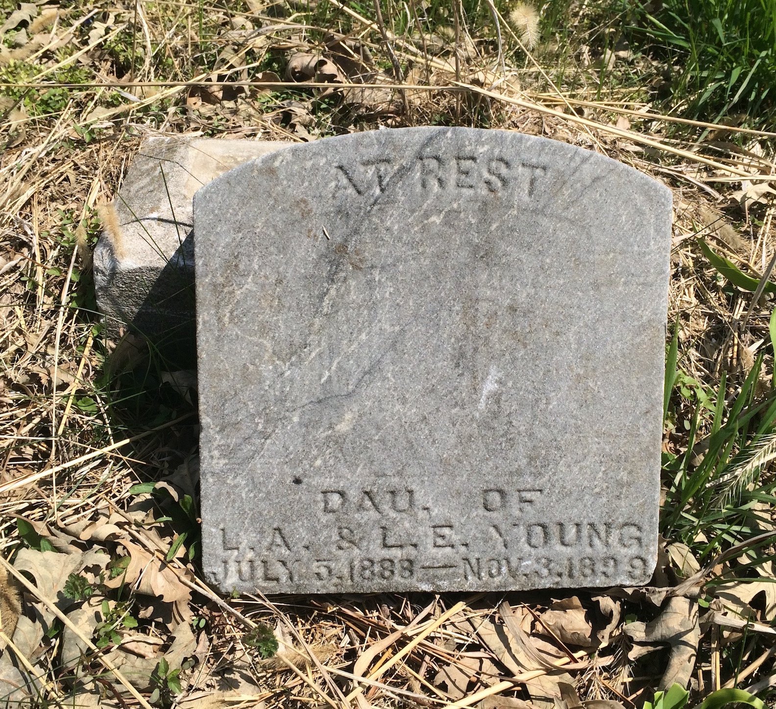 Hazel Verna Young is alone, her parents burial site unknown. I learned that she was the daughter of L.A. and L.E. Young. She was only 11 when she died. Her obituary states she had heart disease. I could find nothing about her parents beyond their names and address in Council Bluffs.
