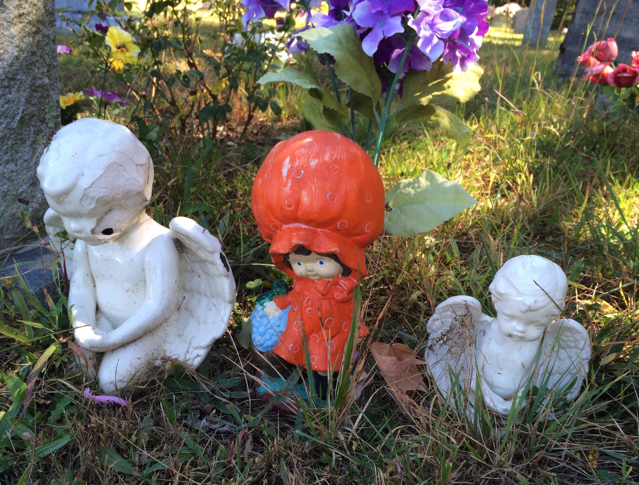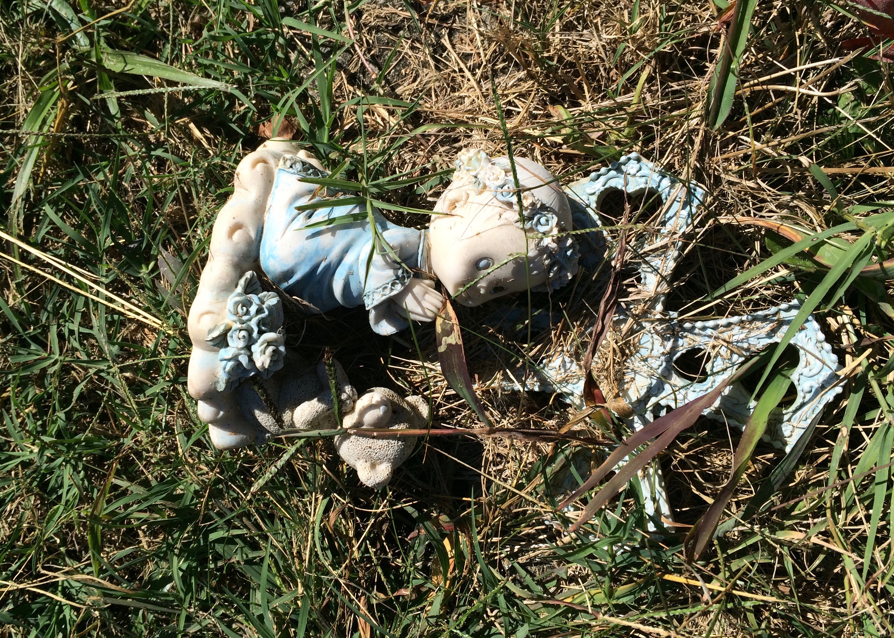 In front of the grave was this little battered angel.