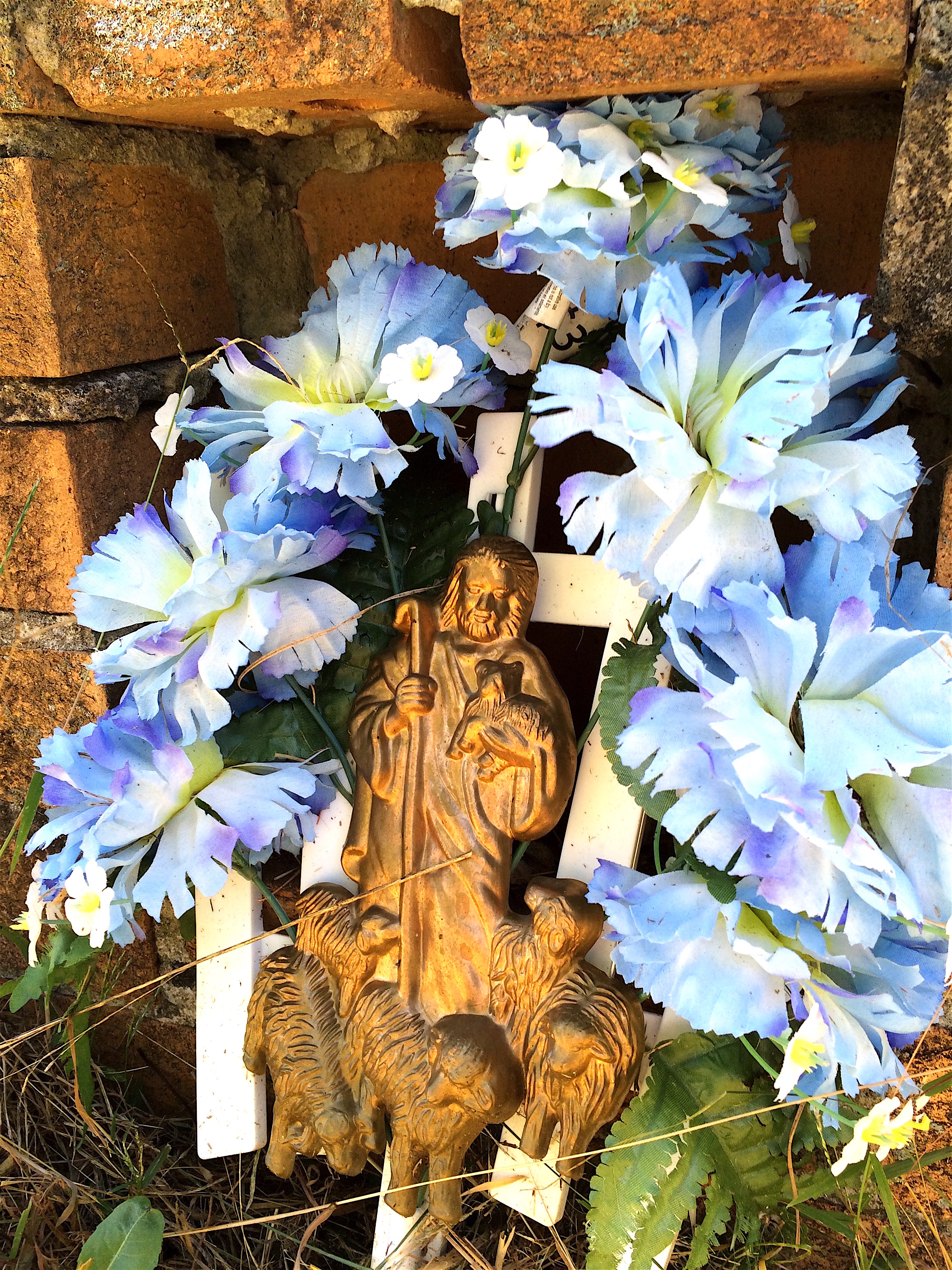 I was intrigued by these three homemade brick monuments, each with a little alcove to place objects. Only a simple stone with the name “Forster’ indicates who they might be.