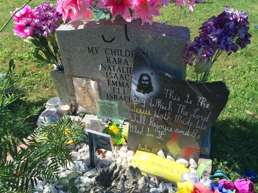 For some reason, I didn’t get a picture of the front of this marker. I believe it was a mother who died fairly young. But it was all the items resting against the back of it that got my attention.