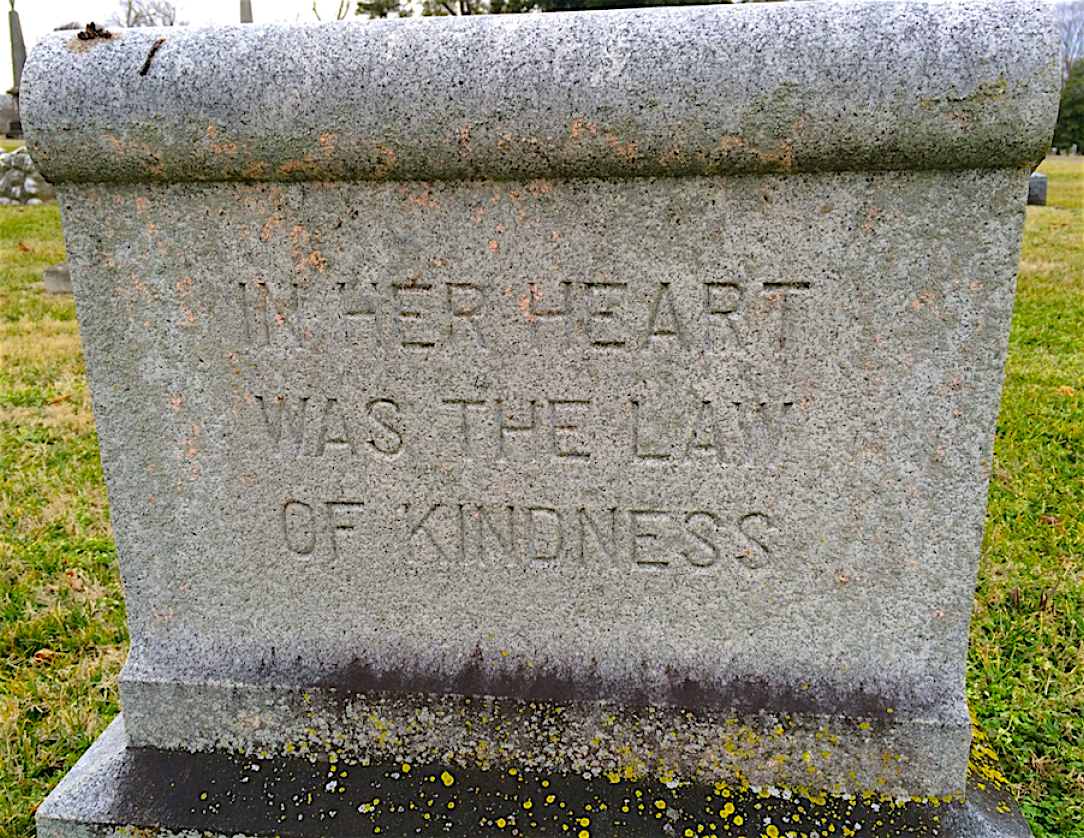 This inscription comes from Proverbs 31:26: “She openeth her mouth with wisdom; and in her tongue is the law of kindness.”