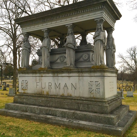 One of the largest monuments in Mount Olivet is for the Furman family. A native of Pennsylvania, Francis Furman owned Furman & Co. Wholesale Dry Goods and Notions on Nashville’s public square from 1870 until around 1890. His death certificate lists his occupation as “capitalist.” He died in 1898 at the age of 80.