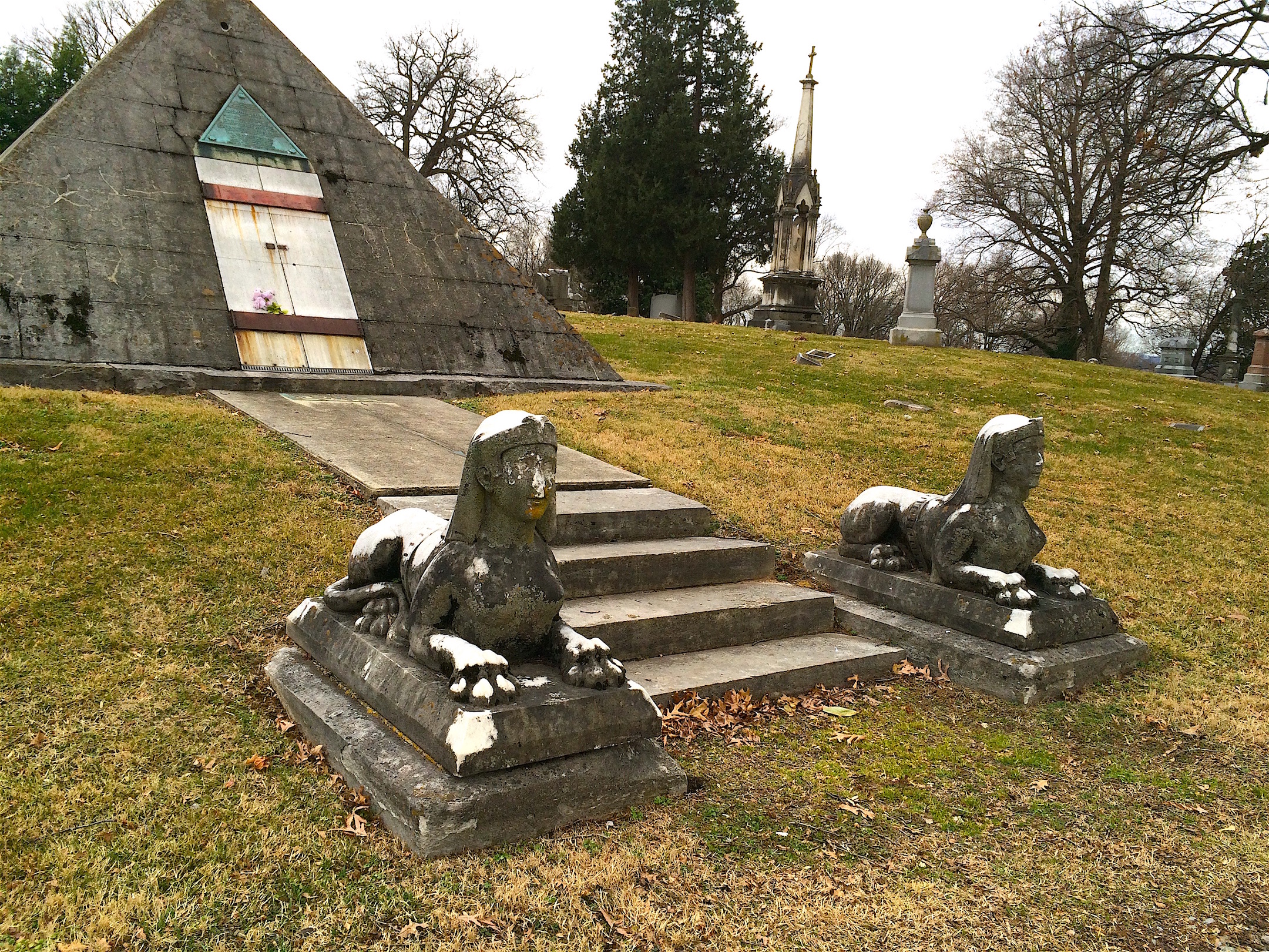 The last story I’m going to share is about a tomb we caught sight of on our way out of the cemetery. Pyramid tombs are not common in the Southeast so when I see one, I pull over to look! The tomb for “Major” Eugene Castner Lewis is indeed impressive.