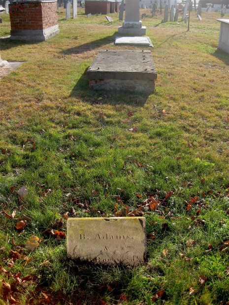 The sign also noted that like Eastern Cemetery, the Old Burying Ground includes stones from a reputable stonecutter. His name was Joseph Sikes, and he came from a family of stone cutters. Because his work is so similar to that of his son Elijah’s, it is often hard to tell who did what stone. Sometimes Elijah marked his stones with an “E.S.” at the bottom.