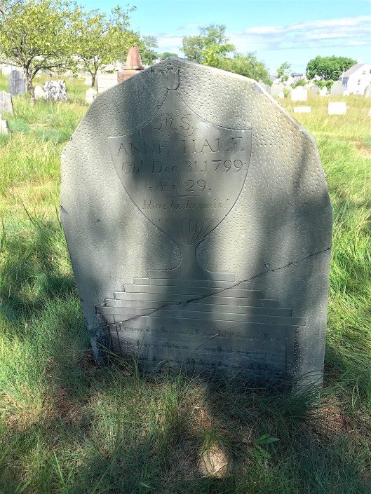 There was also a winged face marker (called a “soul effigy”) represented by the stone of Margaret Fletcher, who was married to a sea captain.