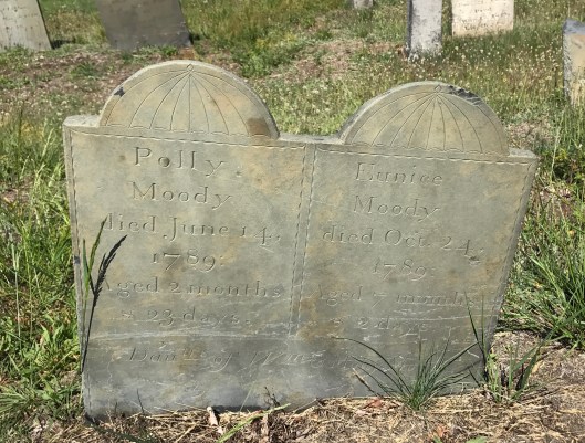 Thomas and Esther Holden share a marker done by Joseph or Elijah, the long oval faces at the top being a trademark. Had it not been for Find a Grave and a book, I wouldn’t have known their names because the stone is in very poor condition and spotted with lichen.