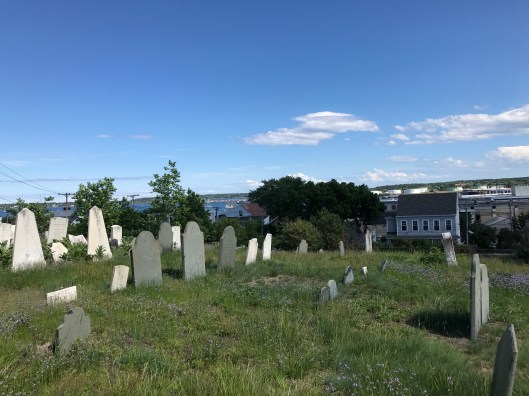 However, I knew I had a good chance of stopping by another cemetery on our way back up the Pemaquid peninsula. I persuaded my husband to drive over to Colonial Pemaquid so I could get a good look at the Old Burying Ground (that’s what they call it). We were hopeful we could find a place to grab dinner afterward.