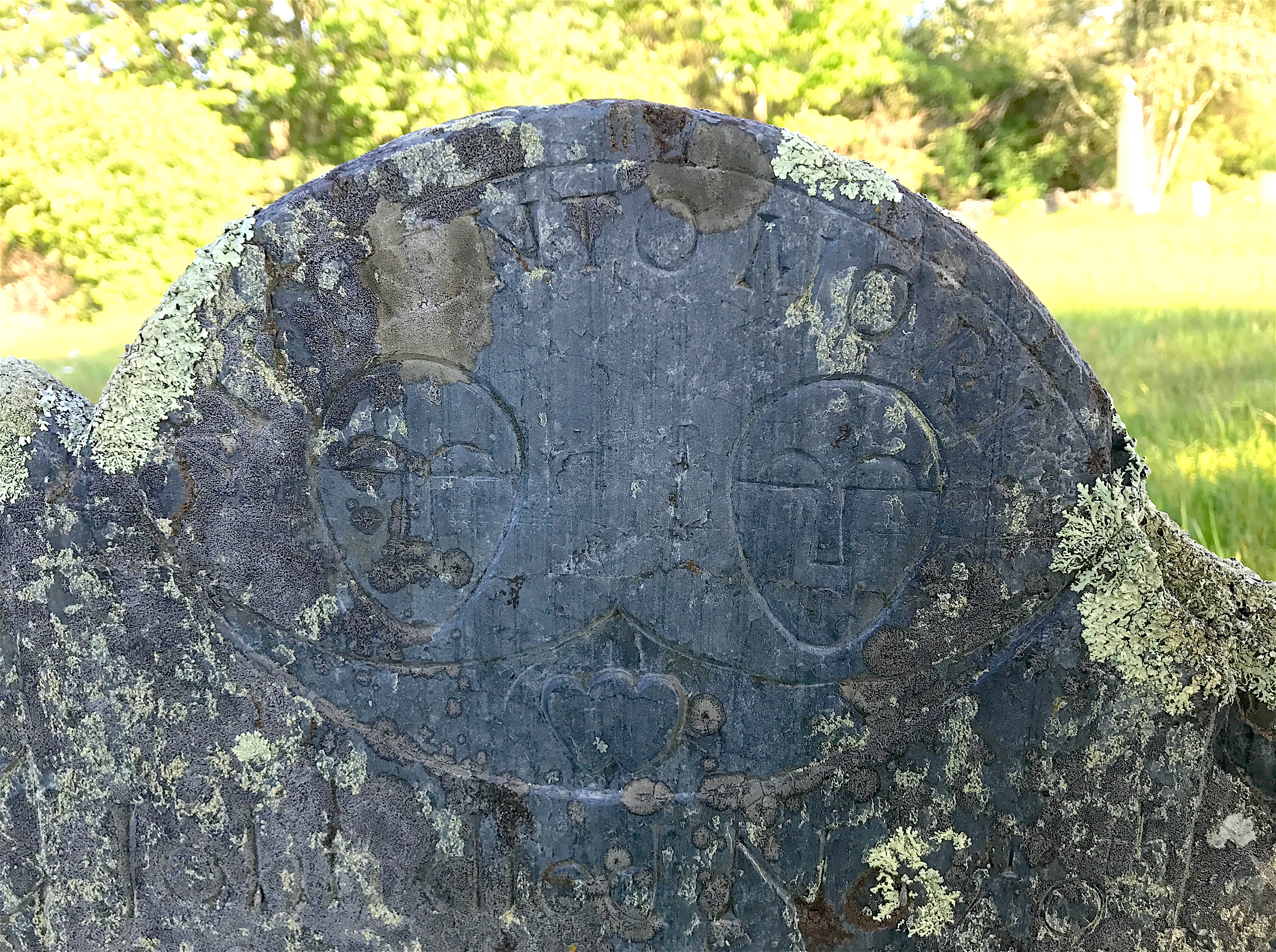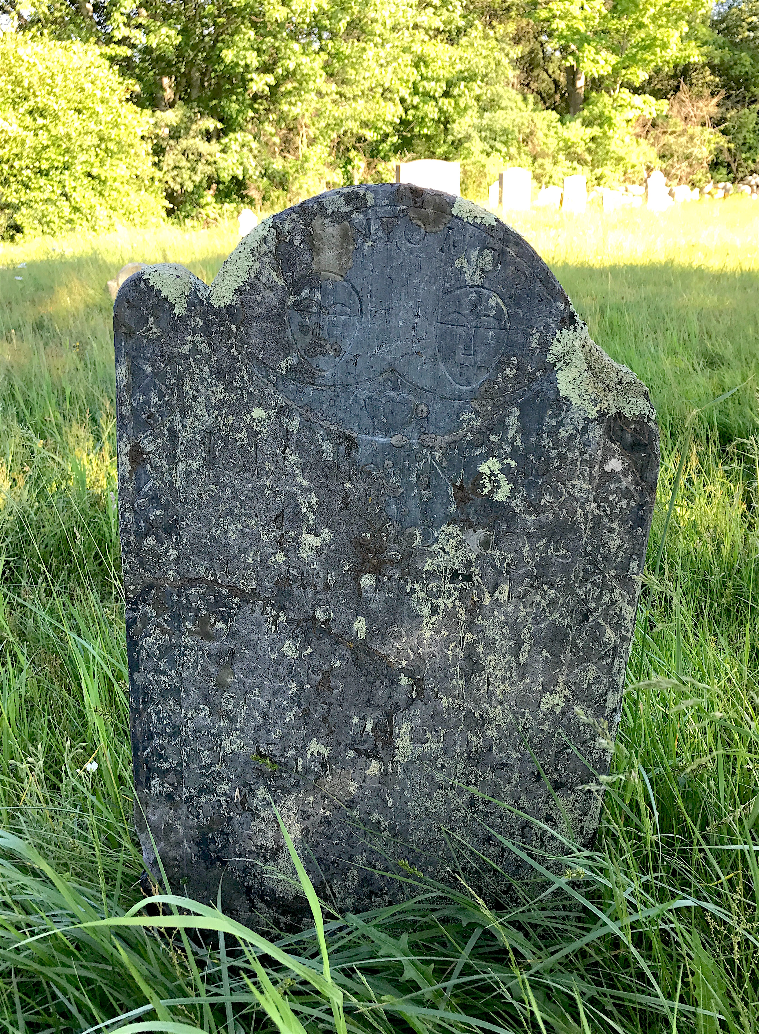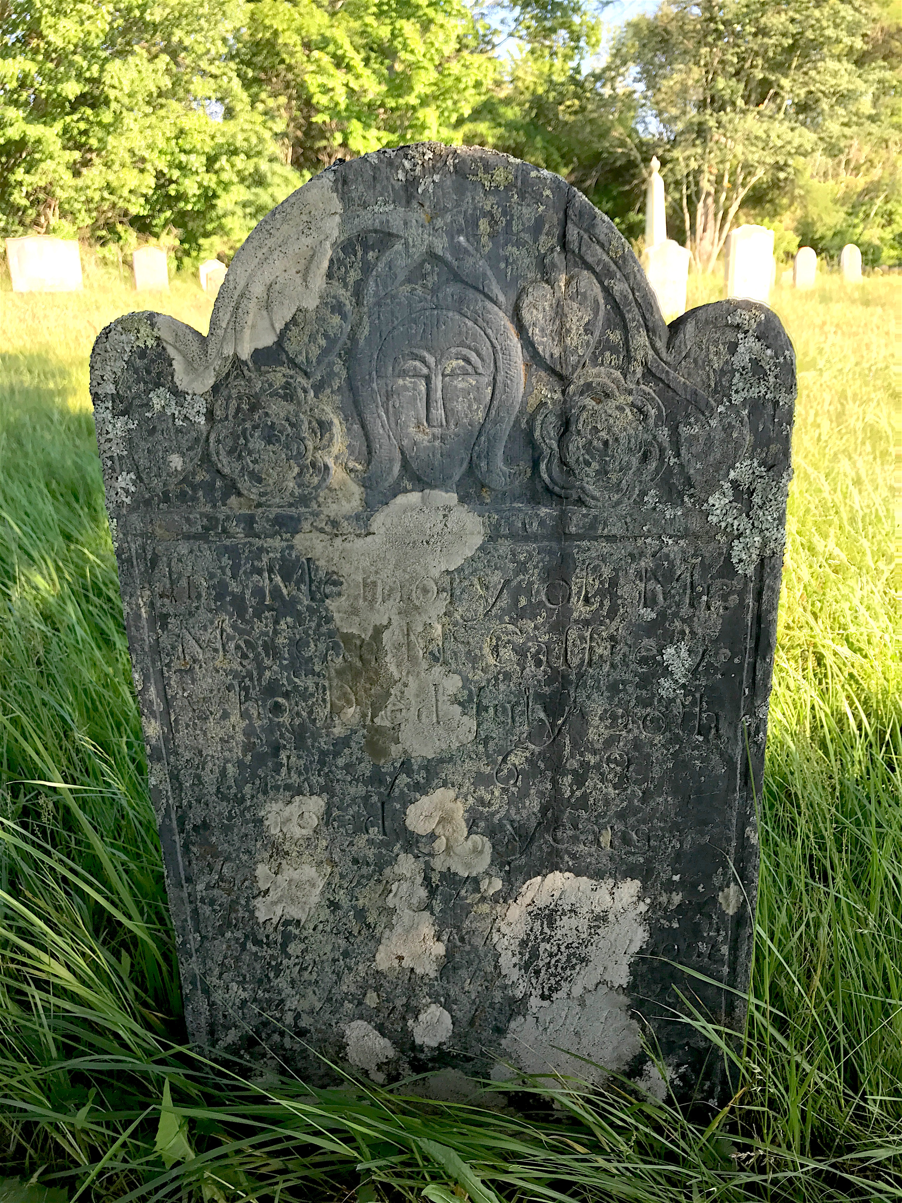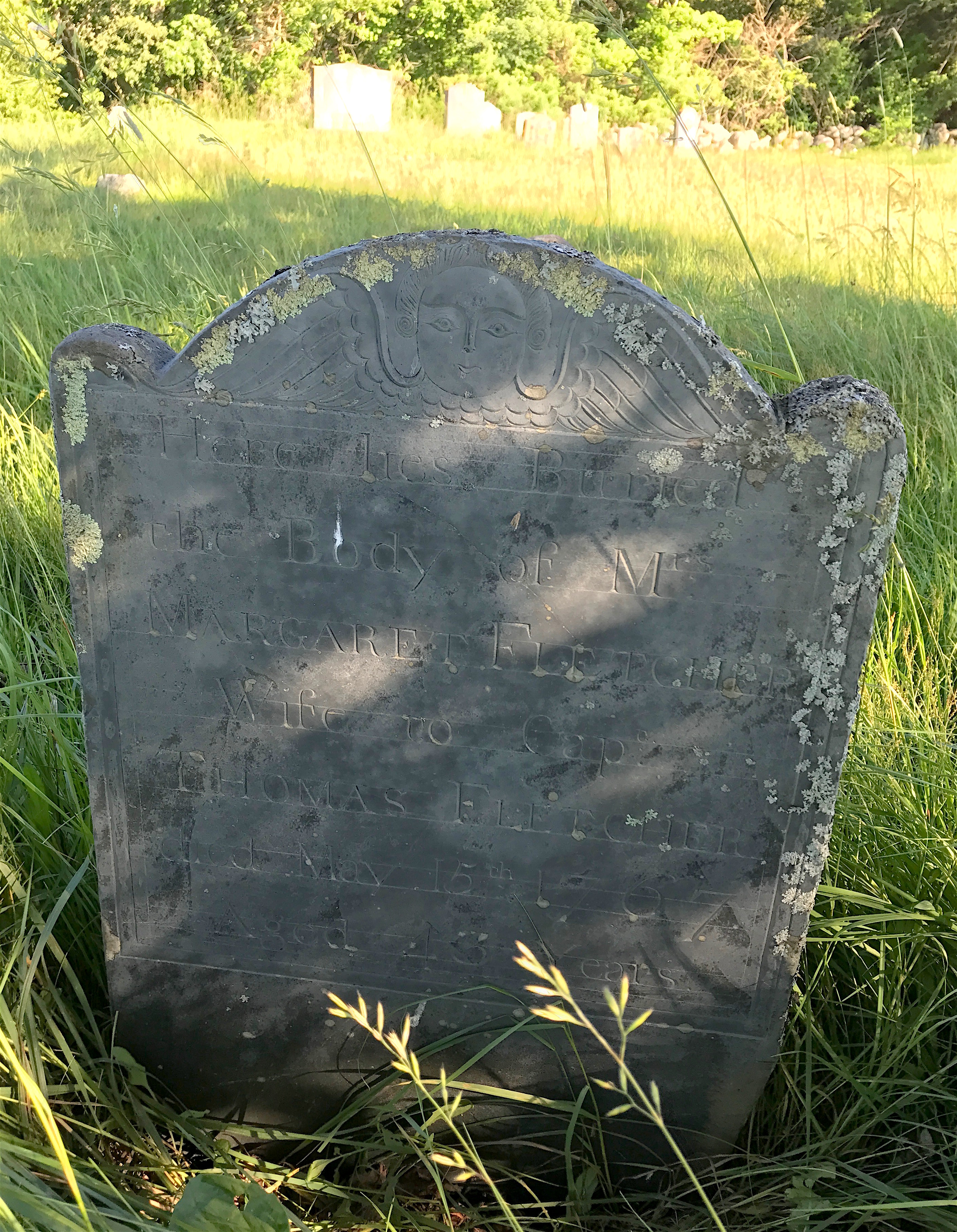 There was also a winged face marker (called a “soul effigy”) represented by the stone of Margaret Fletcher, who was married to a sea captain.