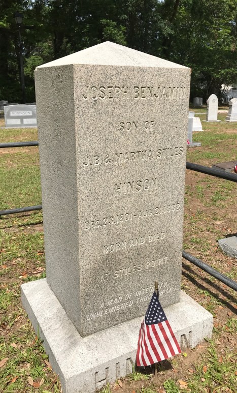 Next to the monument of Winborn Lawton Jr. and his second wife, Martha, is the grave of their grandson, St. John Alison Lawton.