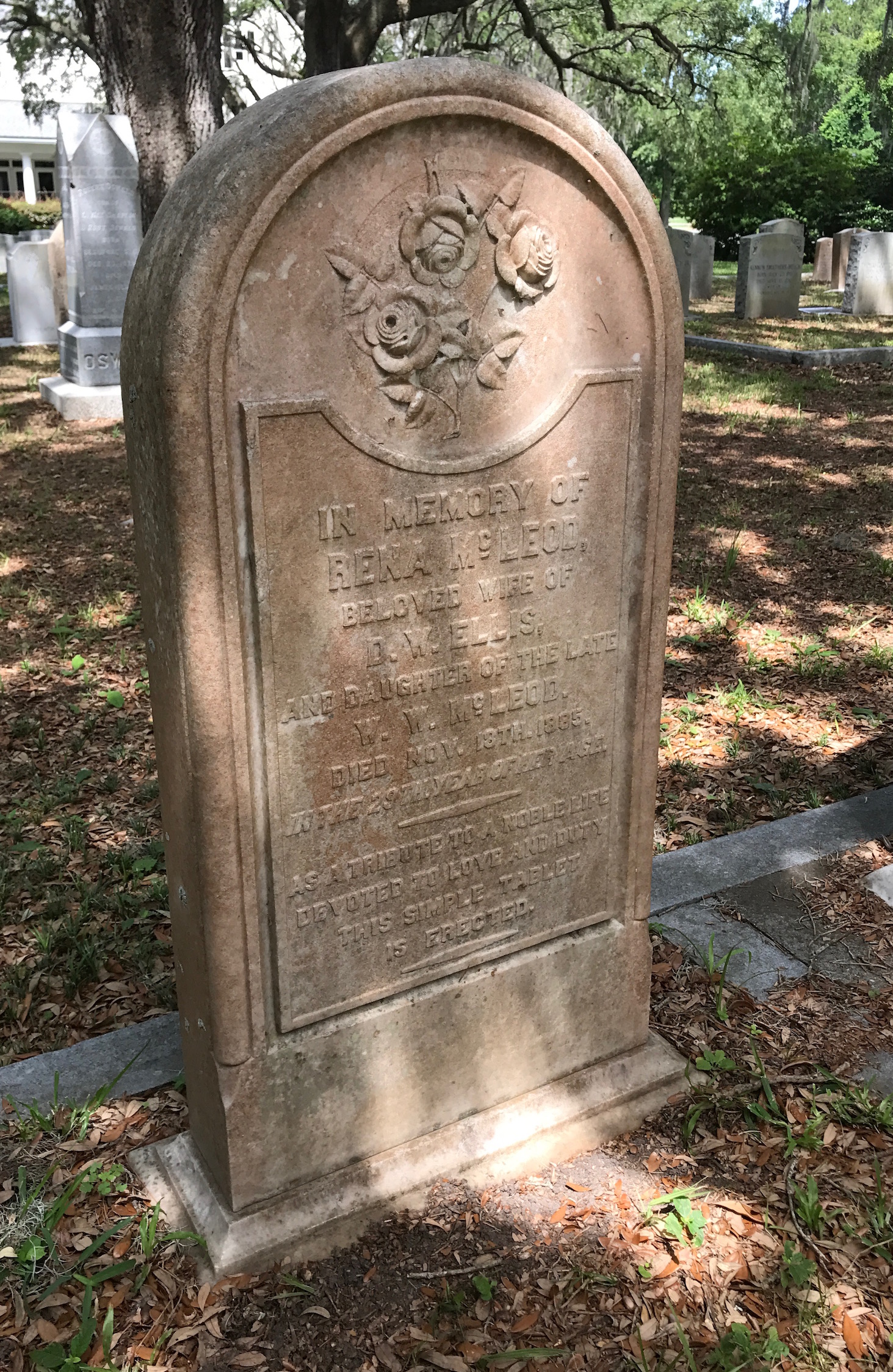 Rena’s mother, Susan Lawton McLeod, died in 1859 at the age of 37. She is buried to the right of her husband William Wallace McLeod’s cenotaph.