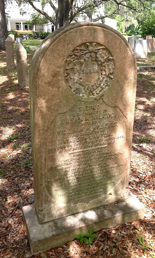 One of William and Susan Lawton McLeod’s children is buried beside her. I include her marker because of the sad little angel face at the top of it. It was carved by prominent Charleston carver, W.T. White. Margaret was Rena McLeod Ellis’ sister.