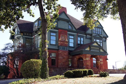 Herndon Hall was built in 1881 in the Queen Anne style. It was designed by the Des Moines architectural firm of Foster & Liebbe for the Polk family. (Photo Source: C.A. Tucker, Wikipedia)