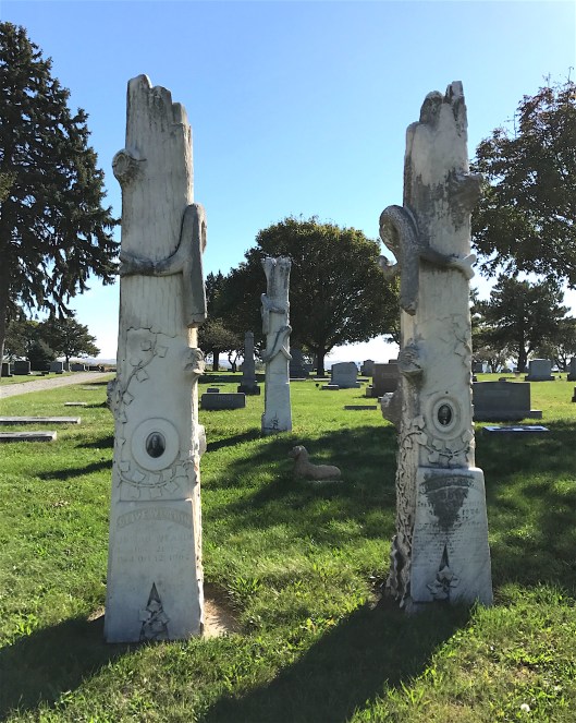 It didn’t take me long to find the tallest monuments in the cemetery. Three distinctive tree-style markers were in the same plot. I’ve rarely seen markers of this variety quite so tall. It was only this week when I started researching them that the tragedy involving two of them came to light.