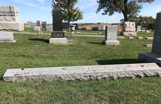 We headed to Villisca Cemetery after that, which has about 5,400 burials recorded on Find a Grave. It is well tended and on that sunny day, it was peaceful except for the birds. While there is a ton of information online about the Moore-Stillinger murders, I could find few details about the cemetery they are buried in. A very helpful directory/map is located outside the front gates to help visitors locate graves, which we appreciated.