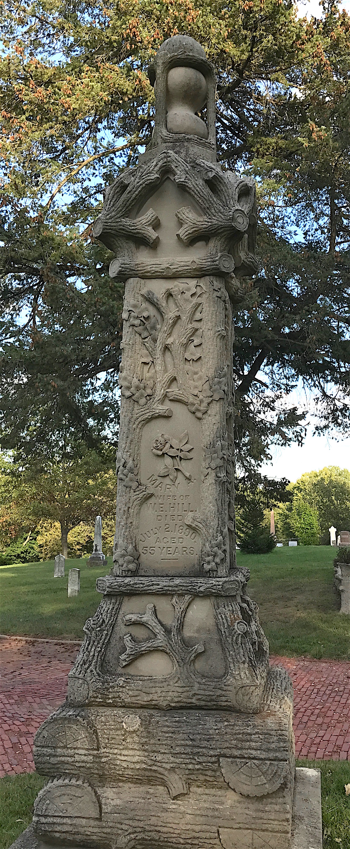 If you were wowed by Morton’s tree monument, there are a few more worth sharing. The “tree” for the Hill family is located in front of the Morton family plot. While they are both trees, the Hill monument feels more rustic to me.