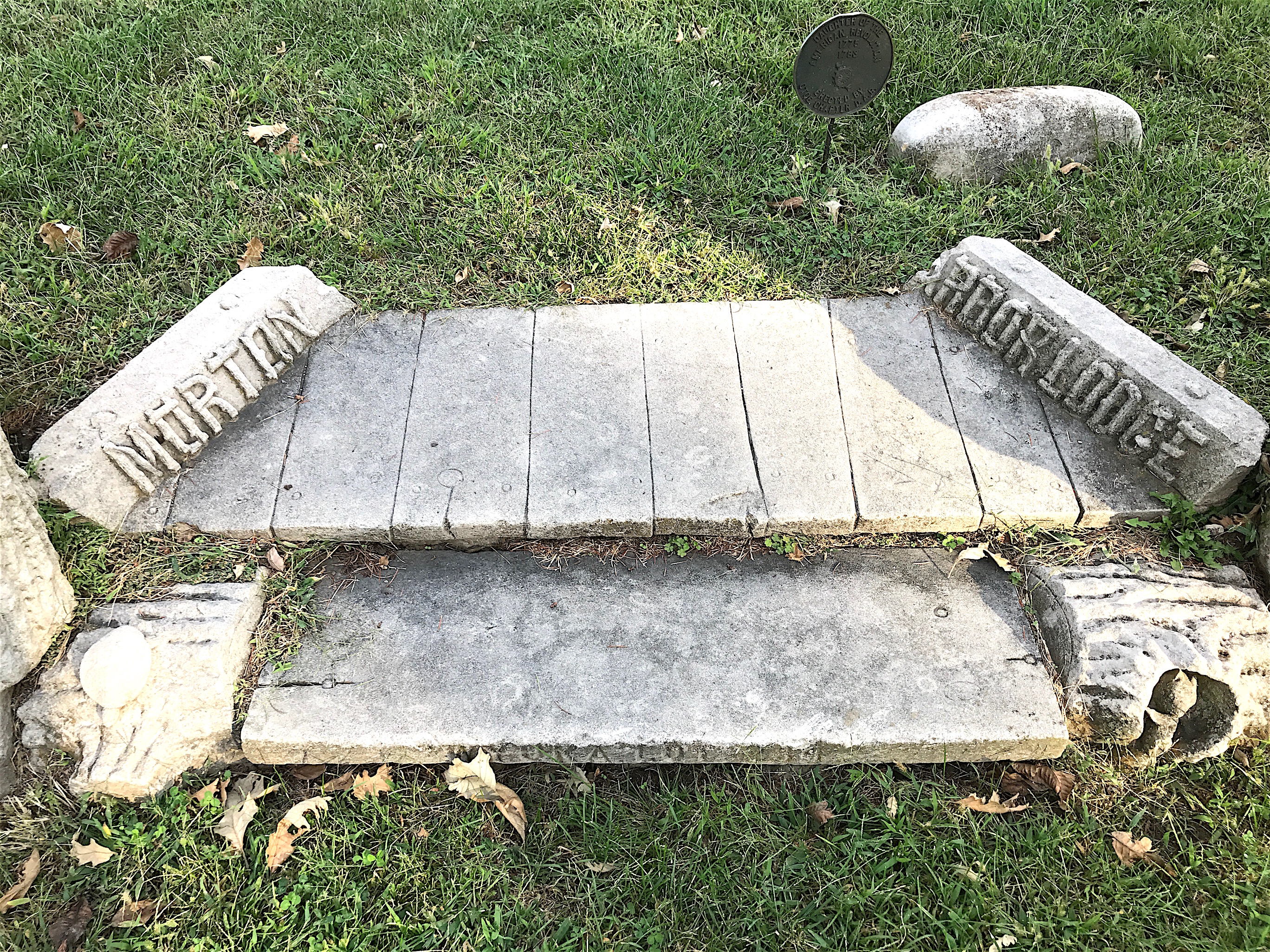 The back of the monument, with a Masonic symbol and Odd Fellows chain, leads me to believe a space was left for the parents but never used. The only Gerhards I could track down in Nebraska City were Augustus and Mary Gerhard. A native of Pennsylvania, Augustus was a carpenter who operated a furniture store in Nebraska City for many years and was a Mason.