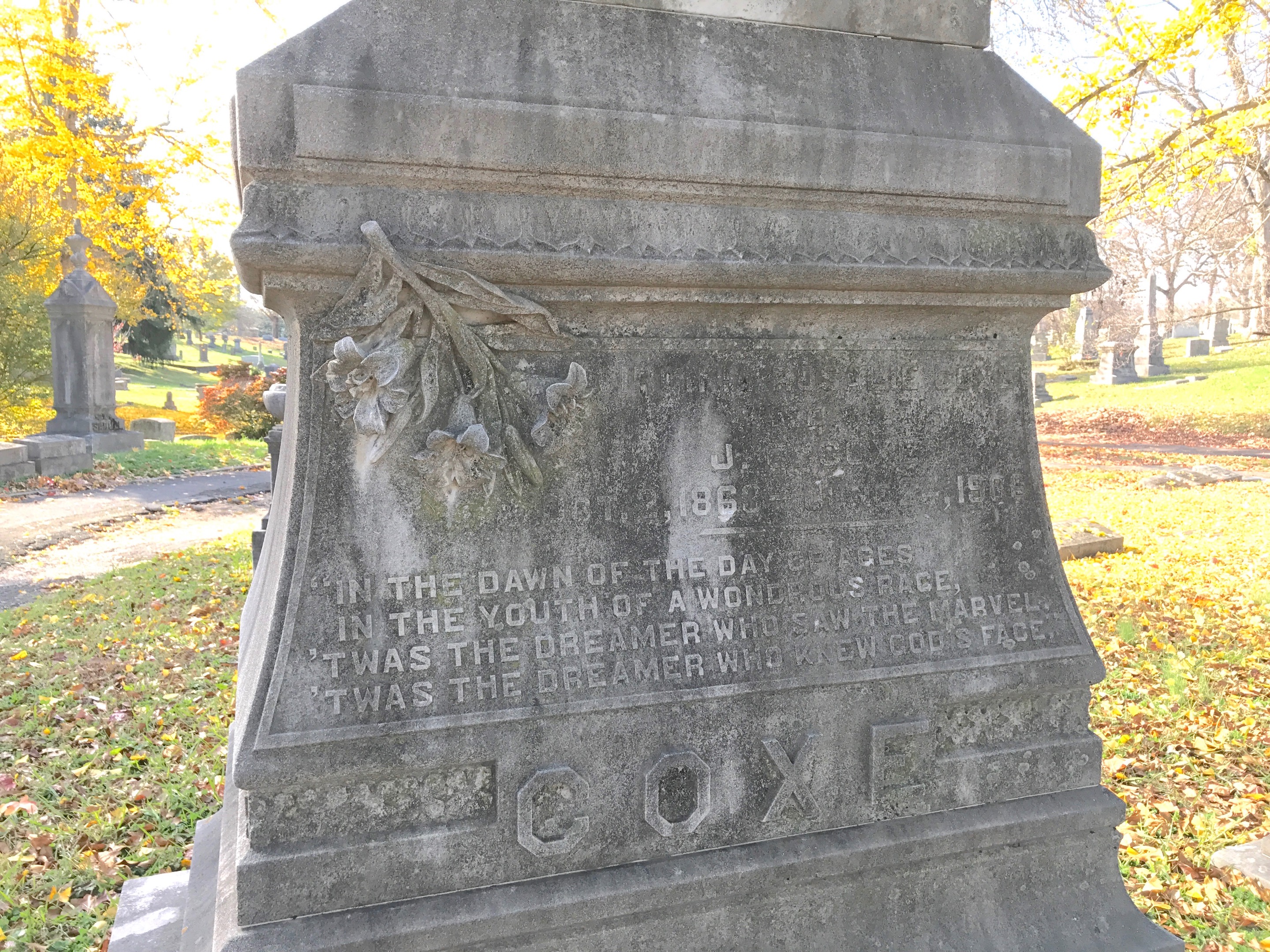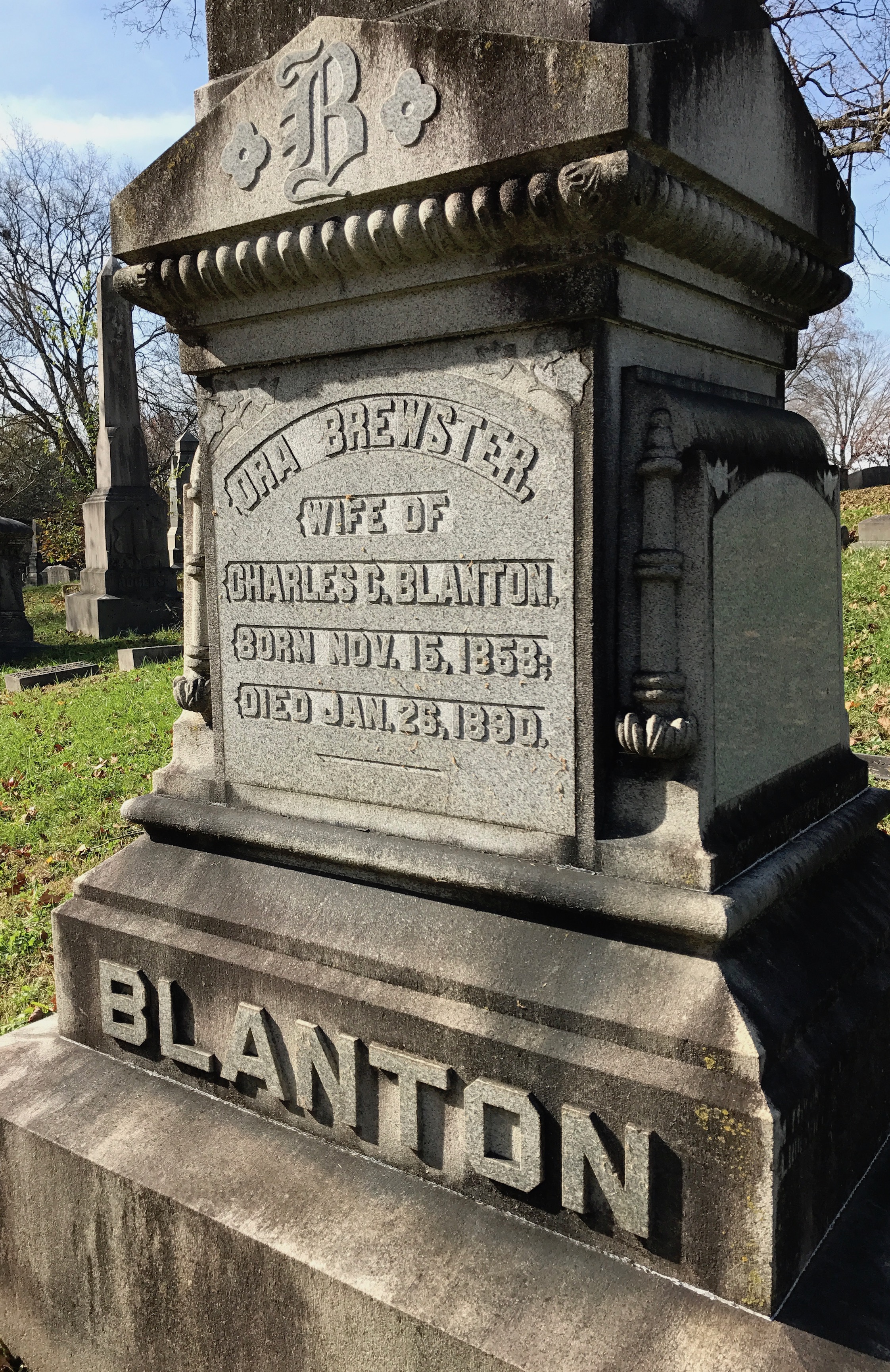 I’m not surprised that the Shepards have a white bronze (zinc) marker, the only one at Old Gray Cemetery. They were much cheaper than granite or marble markers. As a funeral director, L.C. would have been very familiar with them and possibly ordered it himself when Emily died in 1882. All that had to be done after his death was to add a panel with his own birth and death dates.