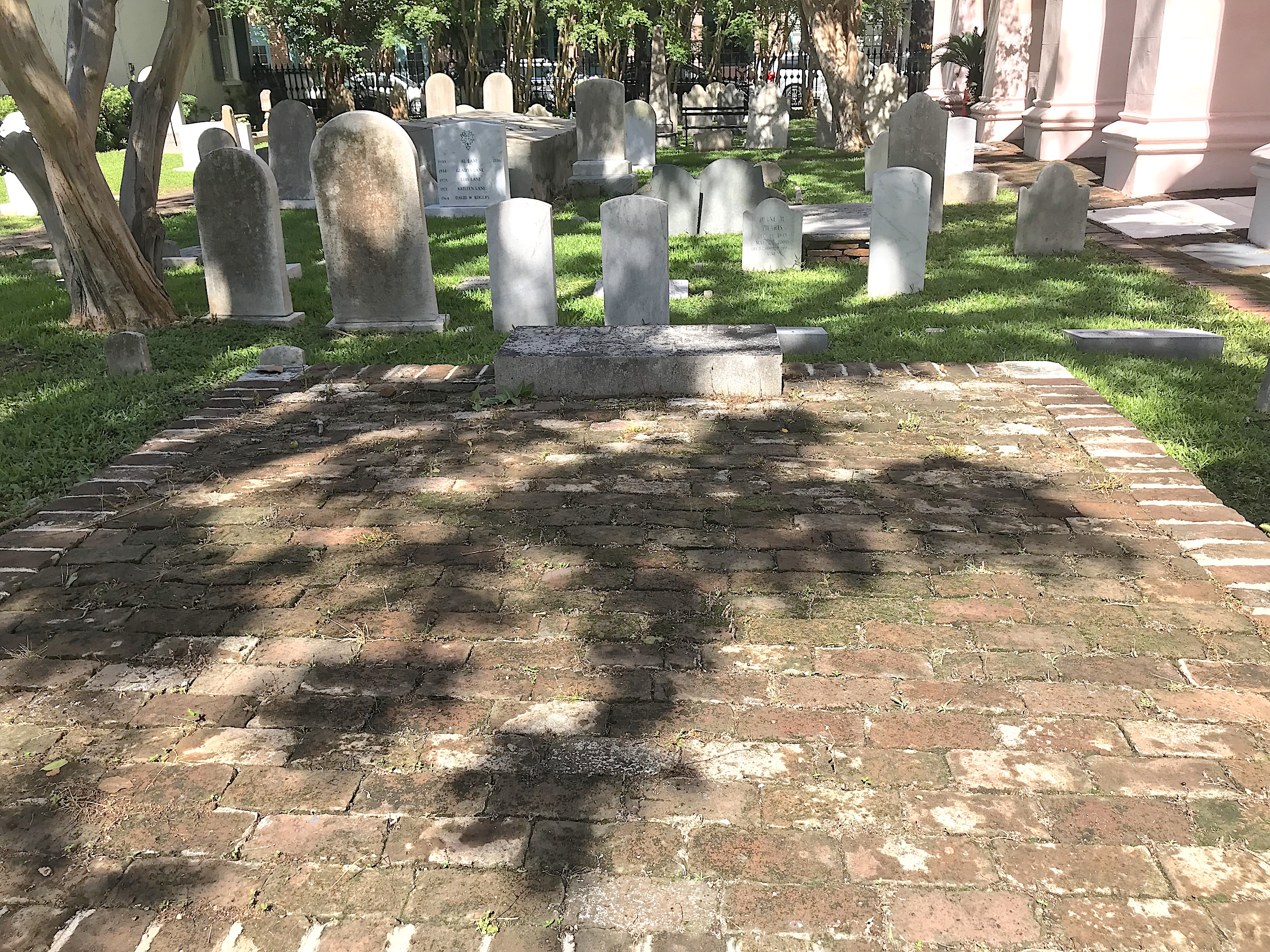 One area Frank pointed out was a plain bricked area with a marker that I might not have even noticed. The Manigault vault, marked with a simple stone, is all that is left of a pioneering family of Charleston.