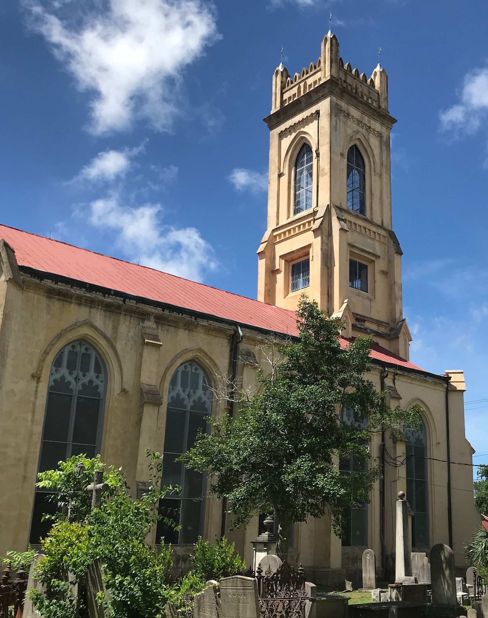A National Historic Landmark, the Unitarian Church of Charleston is the oldest Unitarian church in the South. In colonial Charleston, membership of the Circular Congregational Church (then known as the Independent Church) became so great that they decided to build a second church building. Construction began at this site on Archdale Street in 1772, temporarily interrupted by the Revolutionary War. The small rectangular brick church was finally completed in 1787.