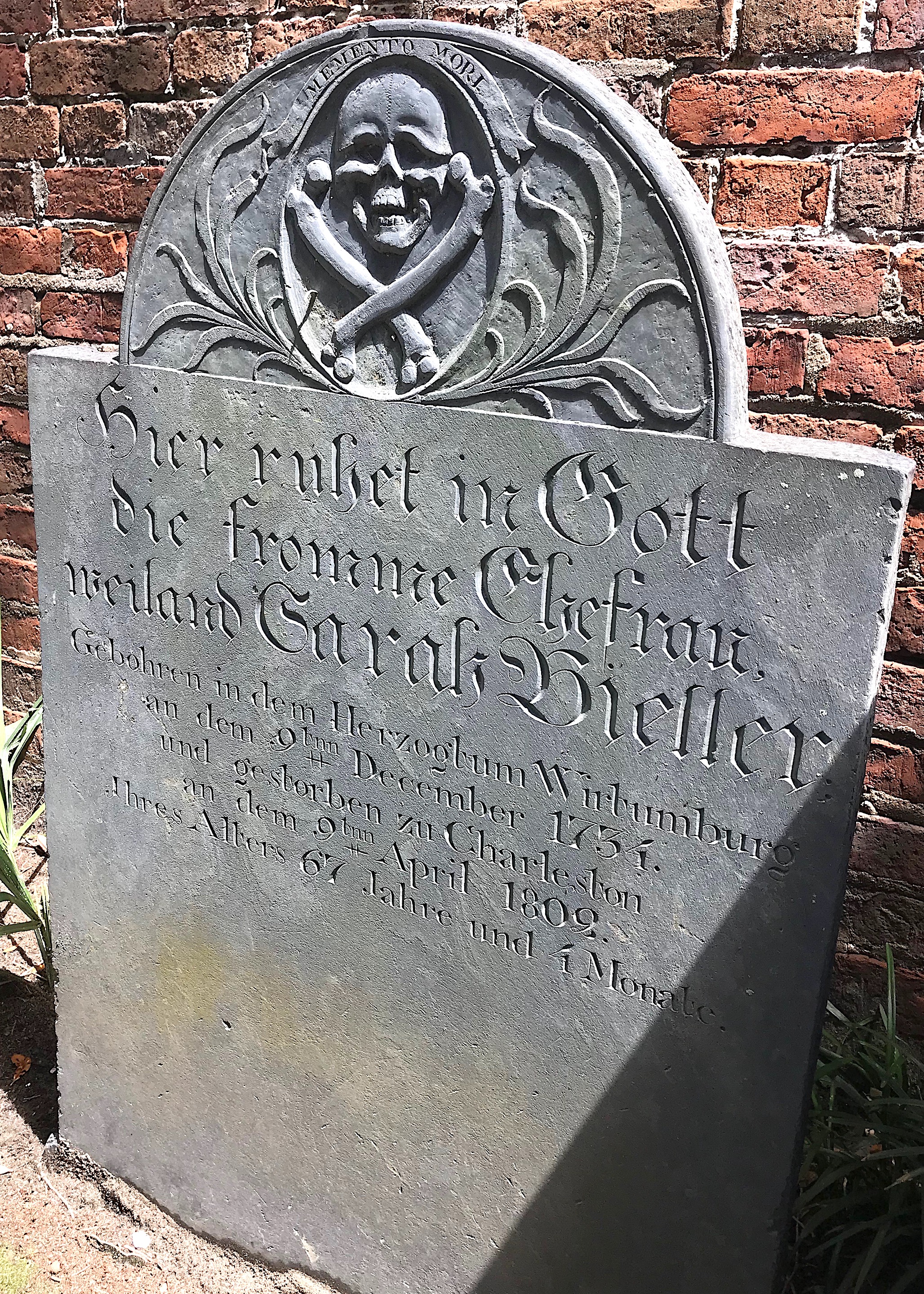 I’m still at St. Michael’s Churchyard in Charleston, S.C. with just a few more graves I wanted to share. This first one is the only one of its kind that I’ve ever seen. I’d never even heard of wooden headboard grave markers until Frank Karpiel showed me the one at St. Michael’s.