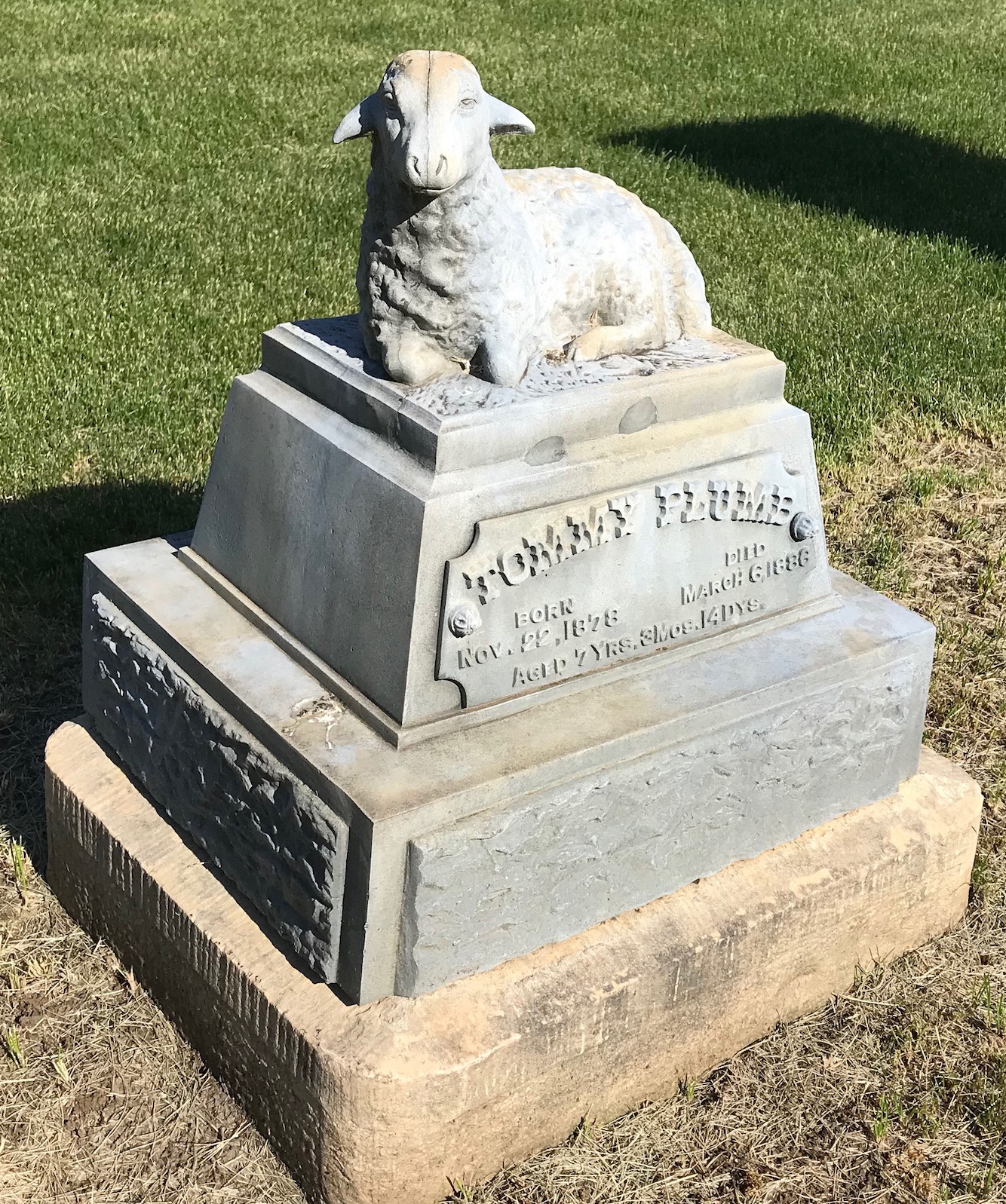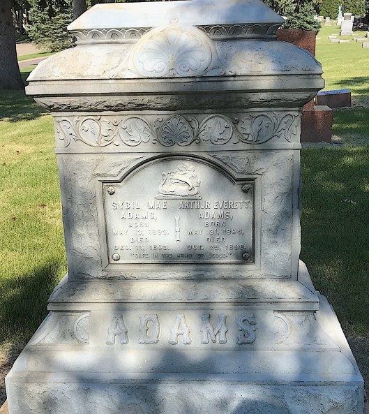 I could not find a photo in the Monumental Bronze catalog for the Adams family monument, but their story captivated me enough to include it. As opposed to a number of people buried at Le Mars Cemetery, John Adams (the father) was a prominent member of the community and thus received a long write up in the local newspaper.