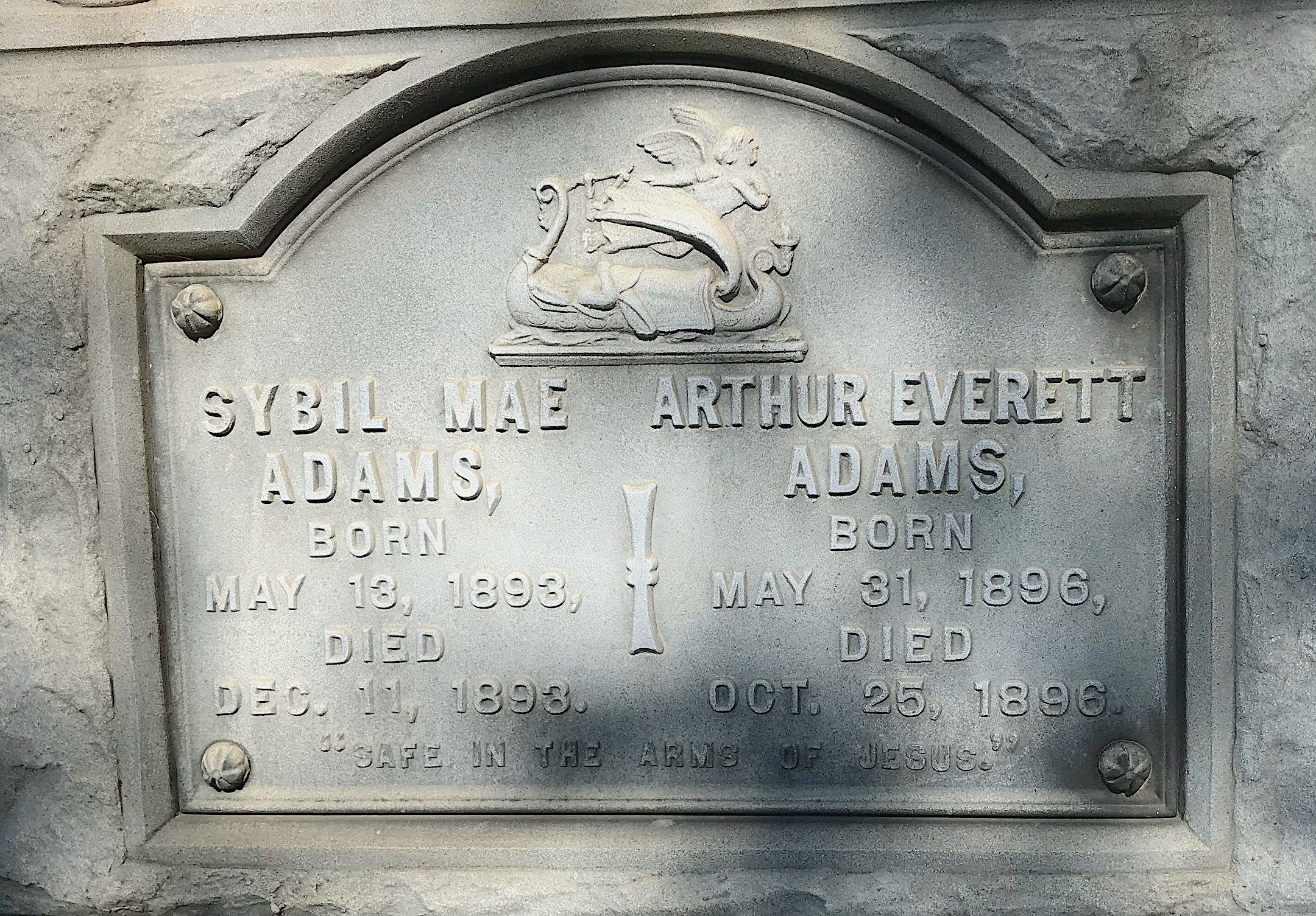 Here’s what “The Last Voyage” looks like on the Adams monument. Perhaps the idea was that Sybil, who died first, was guiding her little brother Arthur to her Heavenly home?