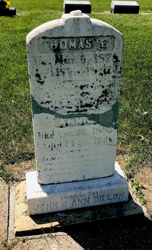 By 1900, Margaret was living with her eldest daughter, Caroline Koehler Helm, and her large family of 12 children. She died in 1903 at the age of 85. I did not get a picture of the other side of Henry’s monument (above) but I suspect her information is on the other side. I do know she is buried at Le Mars Cemetery in the same plot with him.