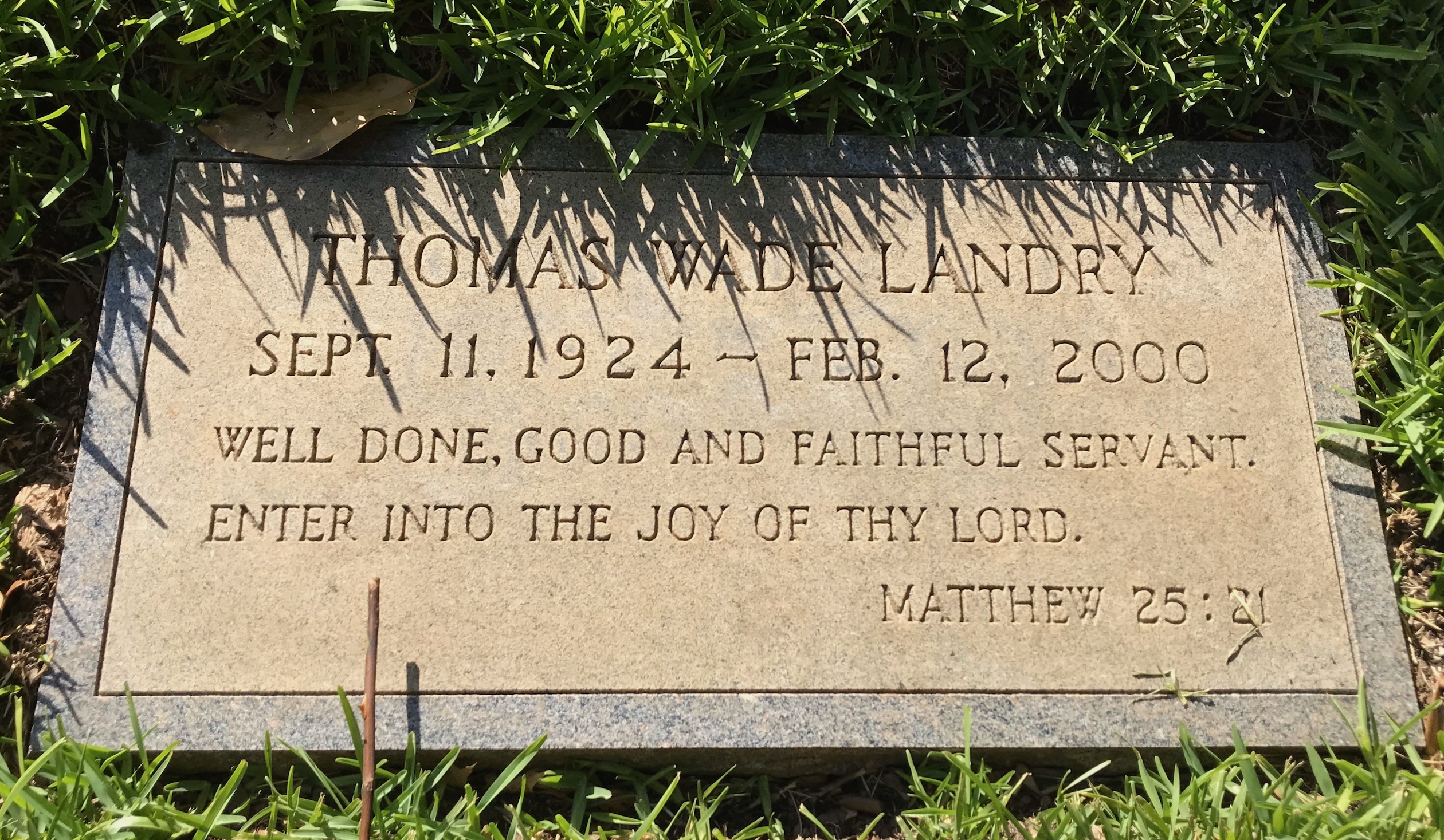 One of the first graves I went hunting for was for a name even non-sports enthusiasts probably know. If you’re from Texas, it’s pretty much required knowledge. Dallas Cowboys football coach Tom Landry was the first coach the team had when it came into being in 1960. He is revered as a football coaching legend.