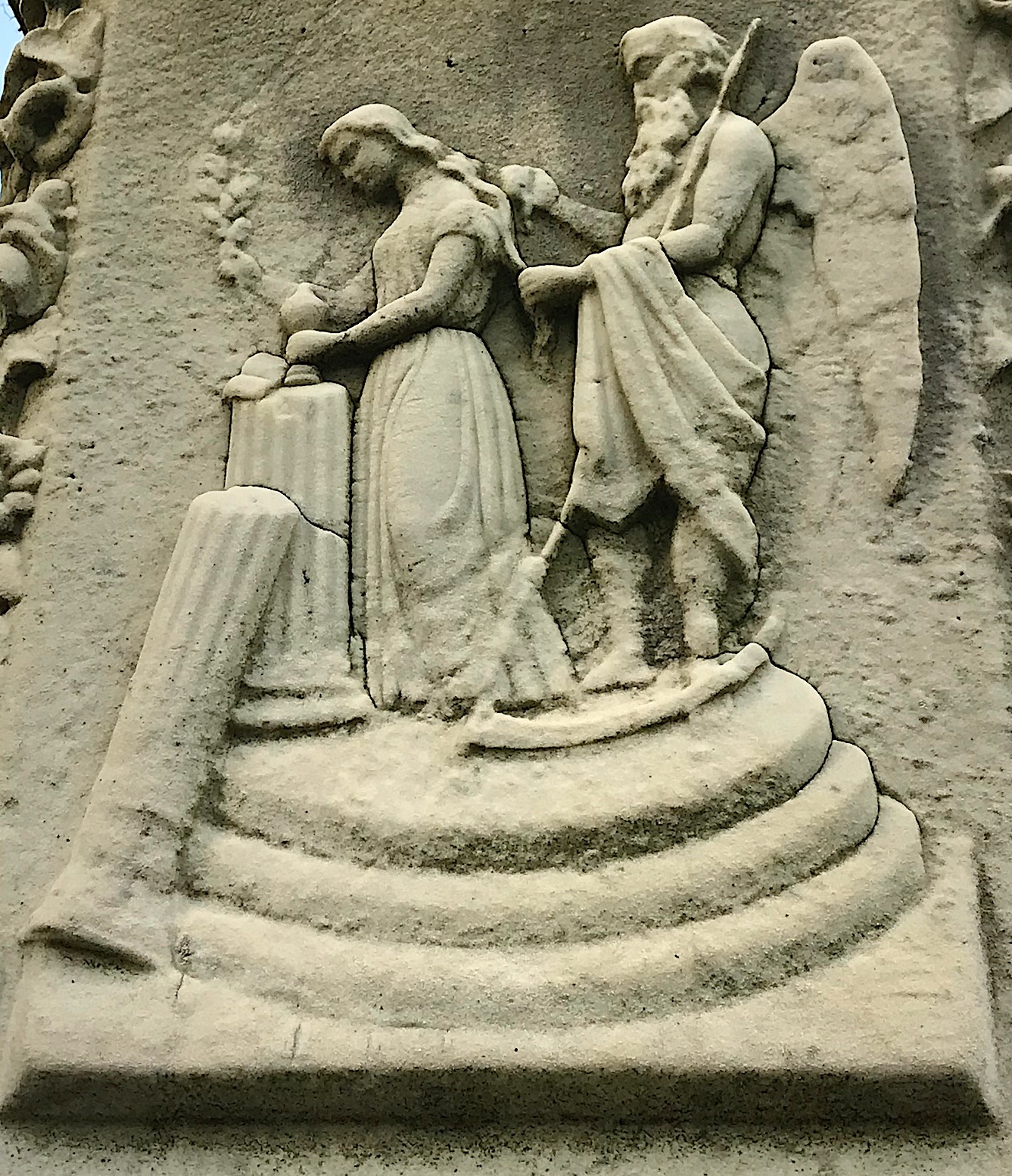 Now if you’re a Mason, I’m sure this all makes perfect sense. The Masons I know told me within their culture, it did. For the rest of us, however, not so much. An elderly angel grabbing a young woman’s hair while she tends an urn would confuse most people I know. So if you see this yourself on a marker, now you know what it means!