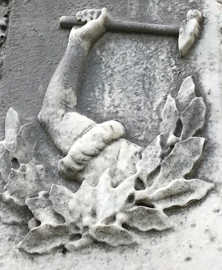 Next comes a symbol I’ve only seen once in a cemetery and this is it. A muscular arm with a rolled up sleeve wields a hammer, which made me instantly think of Arm & Hammer baking soda.