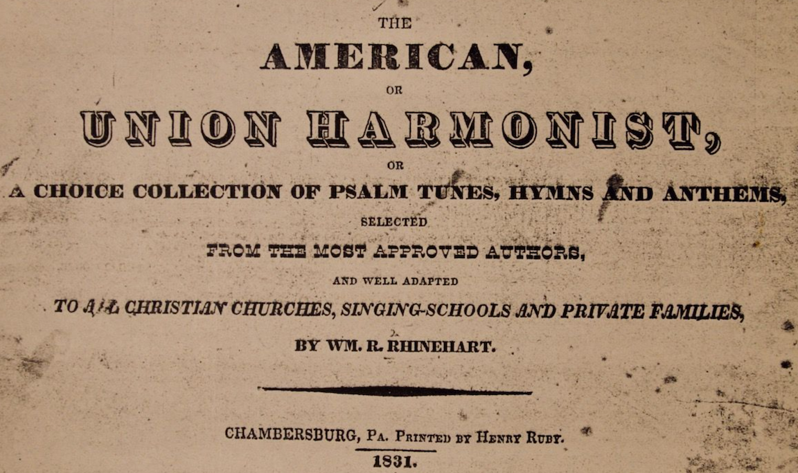 A native of Virginia, the Rev. William R. Rhinehart was born in 1800 and wed Barbara Bender in 1824. According to his Find a Grave memorial, he was composer of hymns and songs in addition to being a Church of the Brethren pastor. He, Barbara, and their son William were living in Clear Spring, Md. in the 1830s when he published a singing school book of songs.