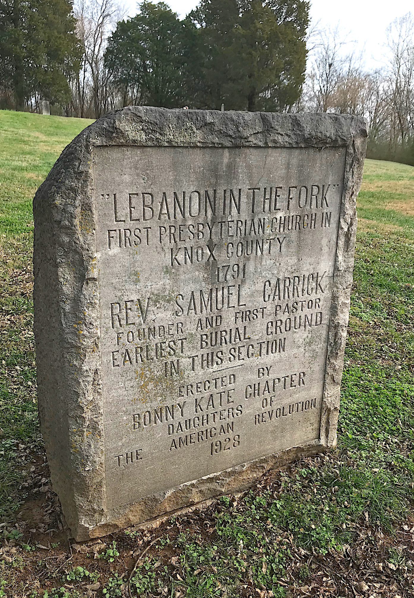 This stone gives you a little bit of the cemetery’s history, thanks to the Bonny Kate chapter of the Daughters of the American Revolution. Bonny Kate Sevier was the wife of Tennessee’s first governor, John Sevier.