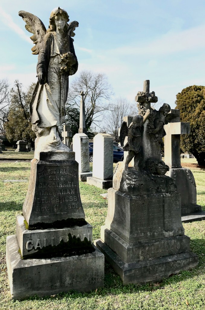 My first jaunt was to Knoxville’s only Catholic cemetery, Calvary Catholic Cemetery (CCC). Consecrated on Feb. 3, 1869, the cemetery is cared for by the Immaculate Conception of the Blessed Virgin Mary Catholic Church. Founded in 1855, the church is located downtown while the cemetery, about two miles away, is in the residential Morningside Park neighborhood. According to Find a Grave, Calvary covers about six acres with about 2,300 memorials recorded.