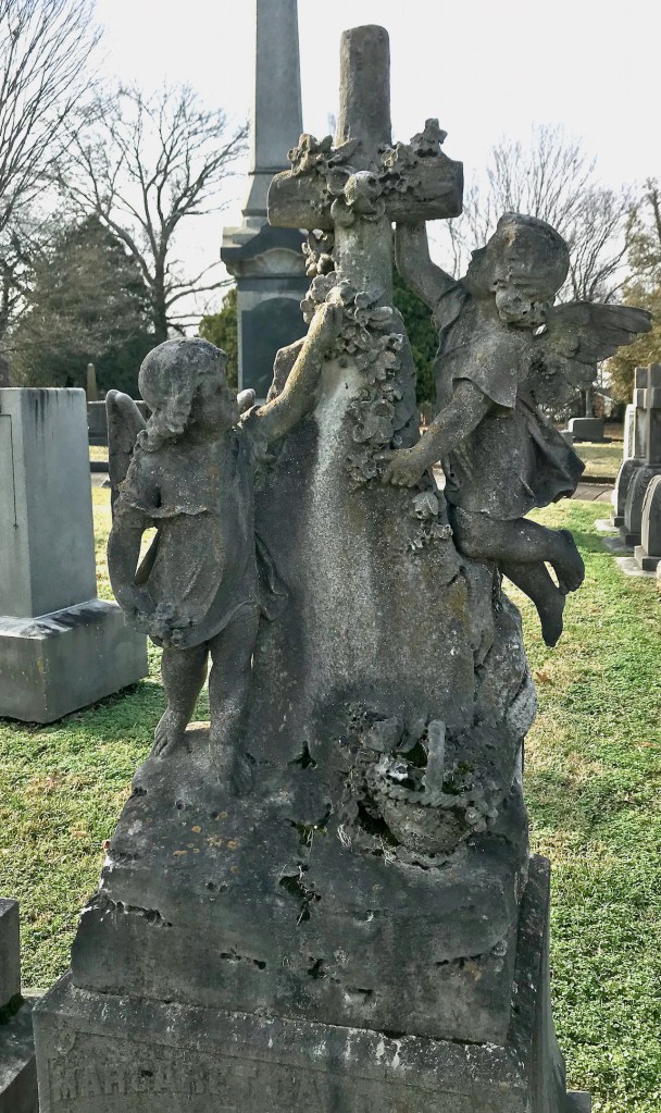 Two monuments standing side by side got my attention early into my stroll. I noticed a tall monument topped by a female statue and was surprised to find that it was for an infant. The one beside it was for his two sisters, twins, who died on the day of their birth. I wanted to know how their story.
