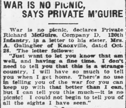 I’ll close with the story of Richard A. McGuire, a soldier who spent most of his life in Knoxville. Like the Callahans, the McGuires were a close family. But unlike many of the men I write about, Richard never married or had children. Sadly, I believe his war years injured him in a way both physically and emotionally that he never recovered from.