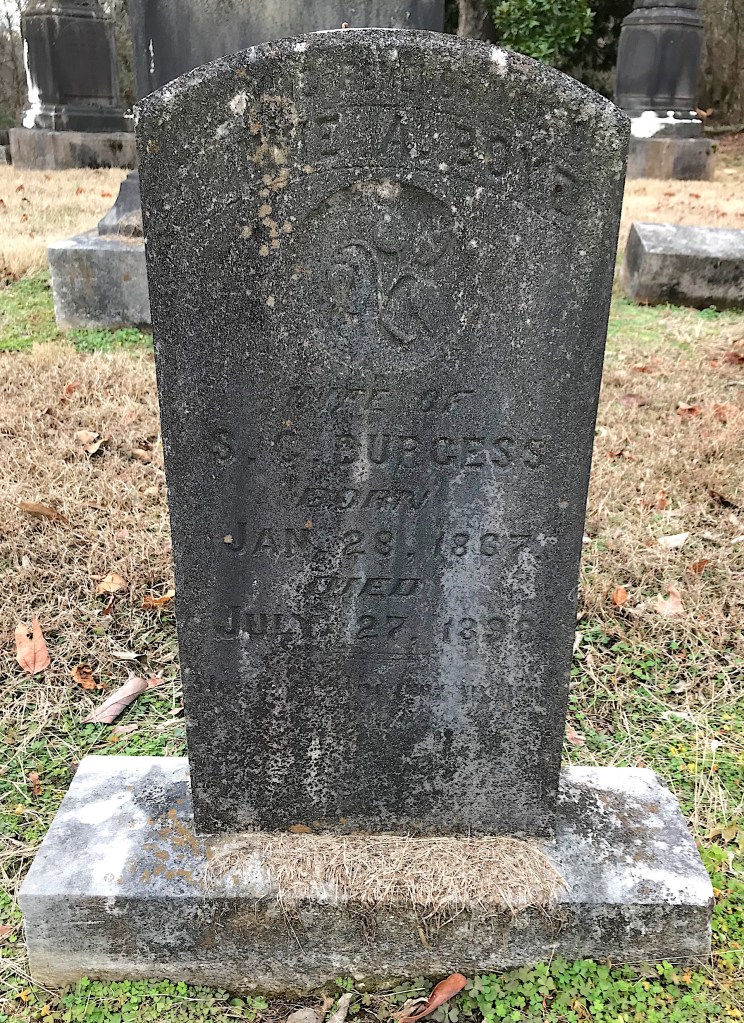 Born in 1857, Schwartz Christian (S.C.) Burgess was son of saddler Edward Burgess and Mary Brown Burgess. Some records say he was born in Virginia, others say Tennessee. According to the 1880 U.S. Census, he was working as a blacksmith and still living with his parents in Cleveland, Tenn. That’s about 70 miles from Concord.