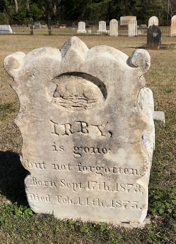 Bettie’s younger sister Mathilda Caroline “Callie” Steiner was born in 1852 and she married merchant Jacob “Jake” Abner McGeHee in 1871. On Sept. 17, 1873, she gave birth to a son they named Irby. I don’t think they had any other children. He died on Valentine’s Day in 1875, only 15 months old. His obituary details his short life.
