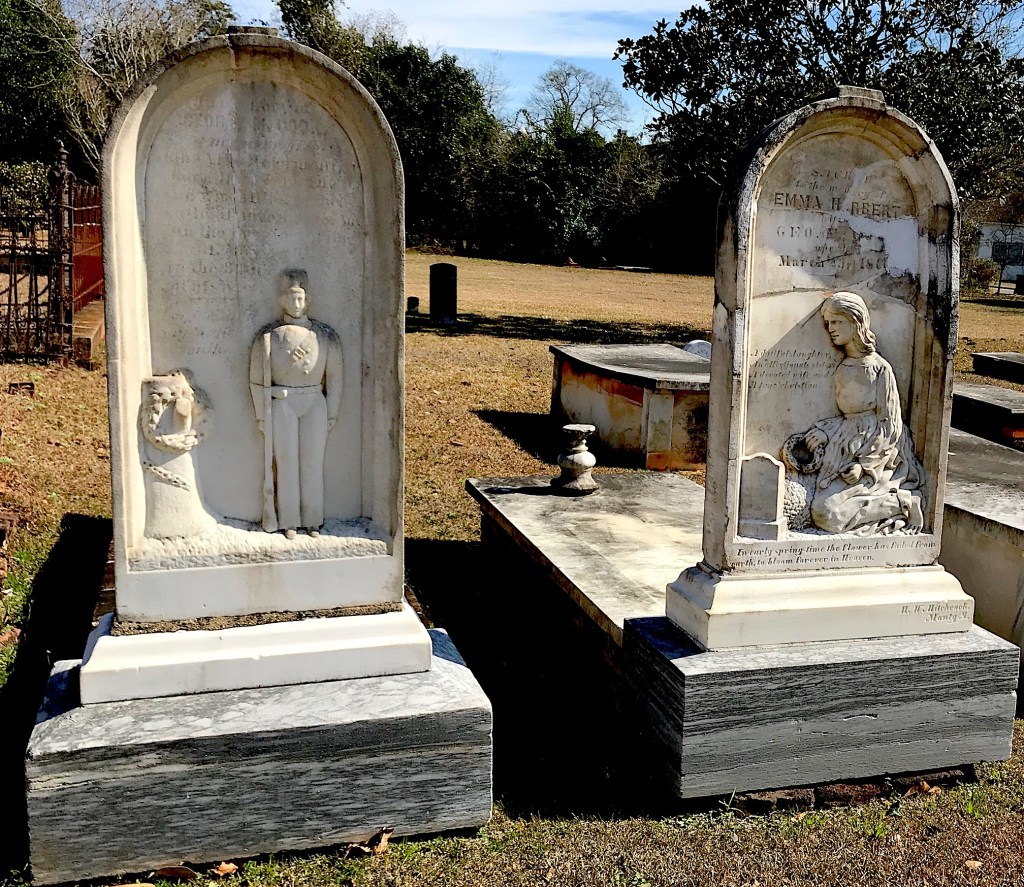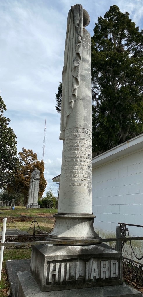 Curbow & Clapp were so well regarded that Alabama Congressman Henry Washington Hilliard (1808-1892) specifically mentioned them in his will as the firm he wanted to provide his grave monument after he died. His will also stated he’d already designed what he wanted. As it happens, I unwittingly photographed it when I visited Oakwood Cemetery in Montgomery in February 2021 when I visited.