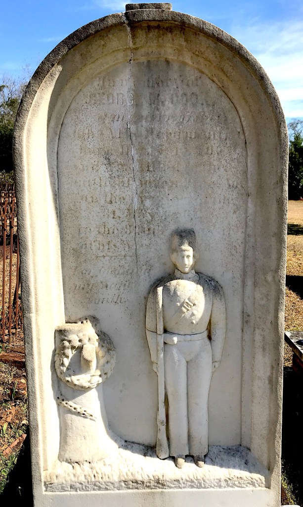The oldest monument is for Mary E. Perry (pictured below). She was born in 1804 in South Carolina and died on July 5, 1867 in Greenville, Ala. I’m not sure if her husband passed away before the move south.
